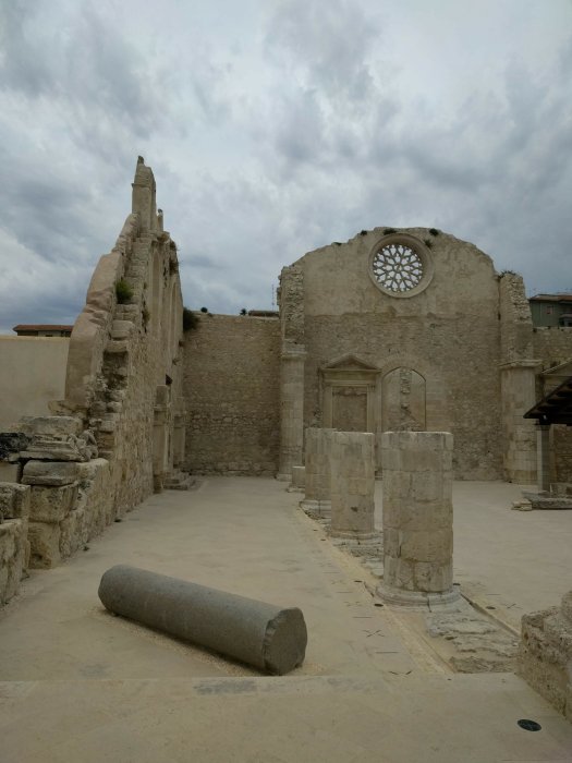 Der Duomo di Syracusa ist in einen Athenatempel hineingebaut. Man sieht innen und aussen die eindrücklichen Säulen des antiken Tempels.