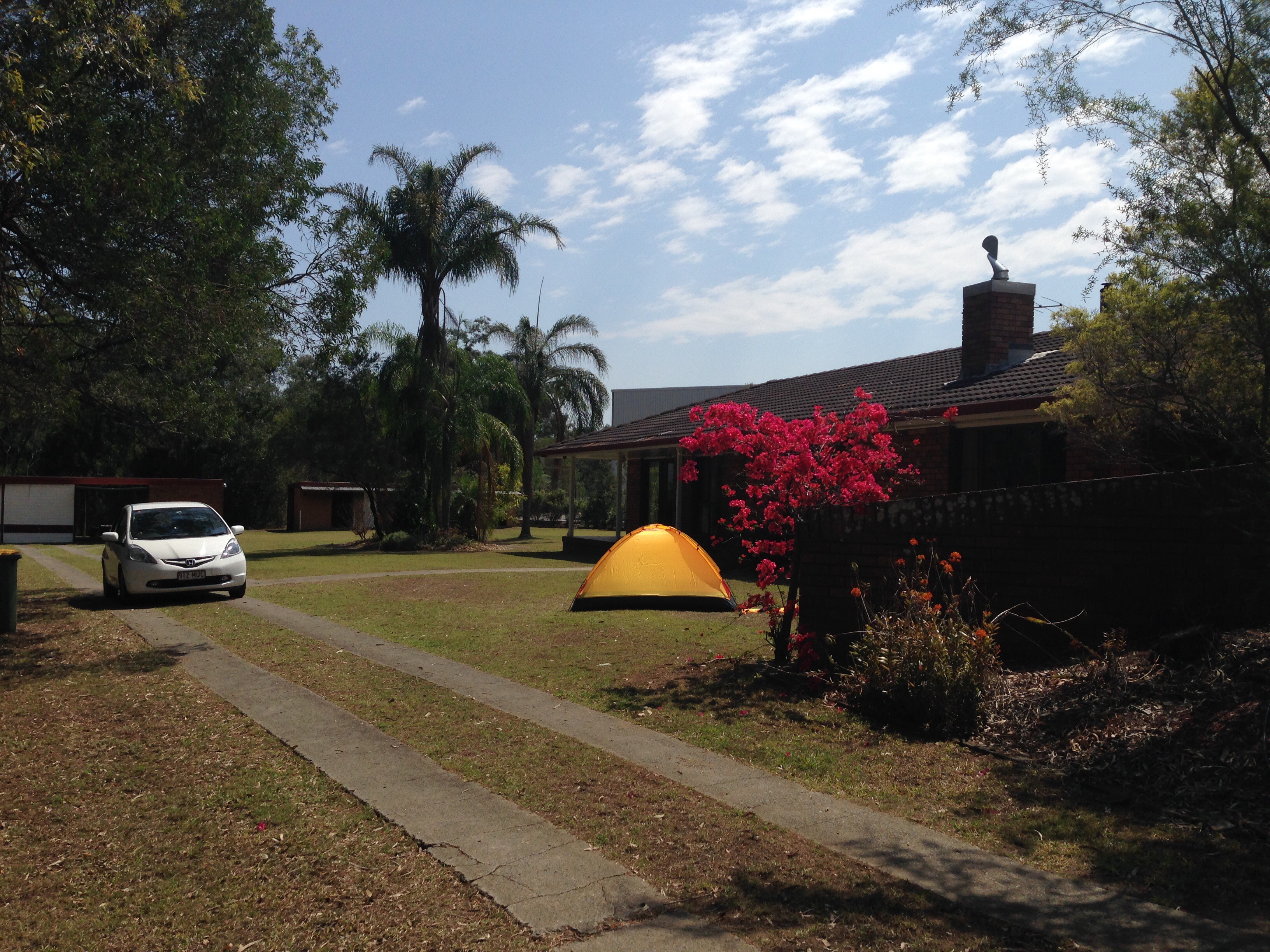 Ein grosses Haus am Rand der städtischen Umgebung von Brisbane. Schön und gemütlich eingerichtet und mit viel Land umgeben. Das ist das Zuhause von Hannes und Susi. Die beiden pflegen eine unkomplizierte, herzliche Gastfreundschaft. Seit sie in Jahr 1979 nach Australien ausgewandert sind, haben unzählige Gäste aus der Schweiz von ihrem offenen Haus profitierten können, darunter auch Marthas Eltern und Geschwister. Ohne sie wären wir nicht hier, hätten nicht die super Beratung zu unserer Reise erhalten und würden vieles vermissen, was eben ihre Persönlichkeit und Begabung ausmacht. Sie sind richtige Schätze. Heute wird im „Wäldli“ ein abgestorbener Baum gefällt. Holzen ist angesagt. Daneben packen wir für 3 Tage Camping an der Sunshine Coast. Morgen gehts los: 2 fliegen, 2 fahren per Auto. Wir haben ein grösseres Zelt gekauft und freuen uns auf’s Ausprobieren.