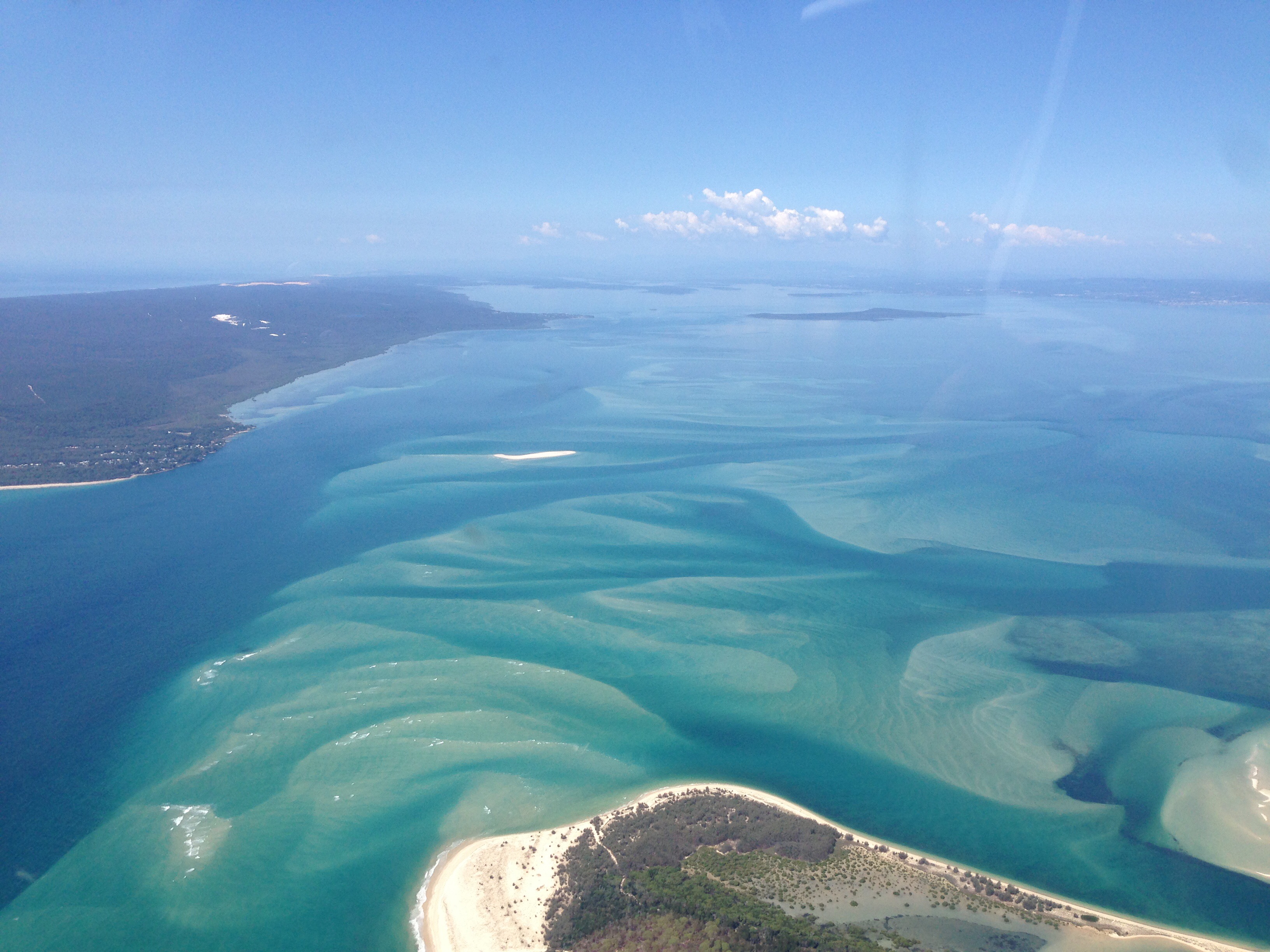 Ein Tag am Strand. Wie sollte dieser idealerweise aussehen? Sauberer Sand, klares Meer, Wärme, wenig Leute, Sonne und Schatten, Natur. In Noosa Bay finden wir keinen Parkplatz, der Ort inklusive Strand ist total überfüllt. Zum Glück kennen Hannes und Susi die versteckten Plätze. Willst du zu einem (fast) menschenleeren Strand, darf dieser nur zu Fuss erreichbar sein. So treffen wir nach etwa 15 Minuten Fussmarsch durch Naturschutzgebiet auf unser Paradies. Hier verbringen wir ein paar traumhafte Stunden. Herrliche Wellen klaren Wassers spült der Ozean ans Ufer und lädt zum Baden ein. Wir teilen das grosse Planschbecken mit den Buckelwalen, welche sich in unserer Sichtweite tummeln, Sprünge vollziehen und Fontänen in die Luft blasen. Über uns kreist der Seeadler und nutzt die Aufwinde. Wir können uns kaum satt sehen an den majestätischen Tieren. Den Weg von Brisbane an die Sunshine Coast und zurück kann jeweils eines von uns abwechselnd mit Hannes in dessen 2plätzigen Flugzeug zurück legen. Die Vogelschau auf das Küstengebiet ist einmalig schön. Auch von hier oben können wir Wale beobachten.