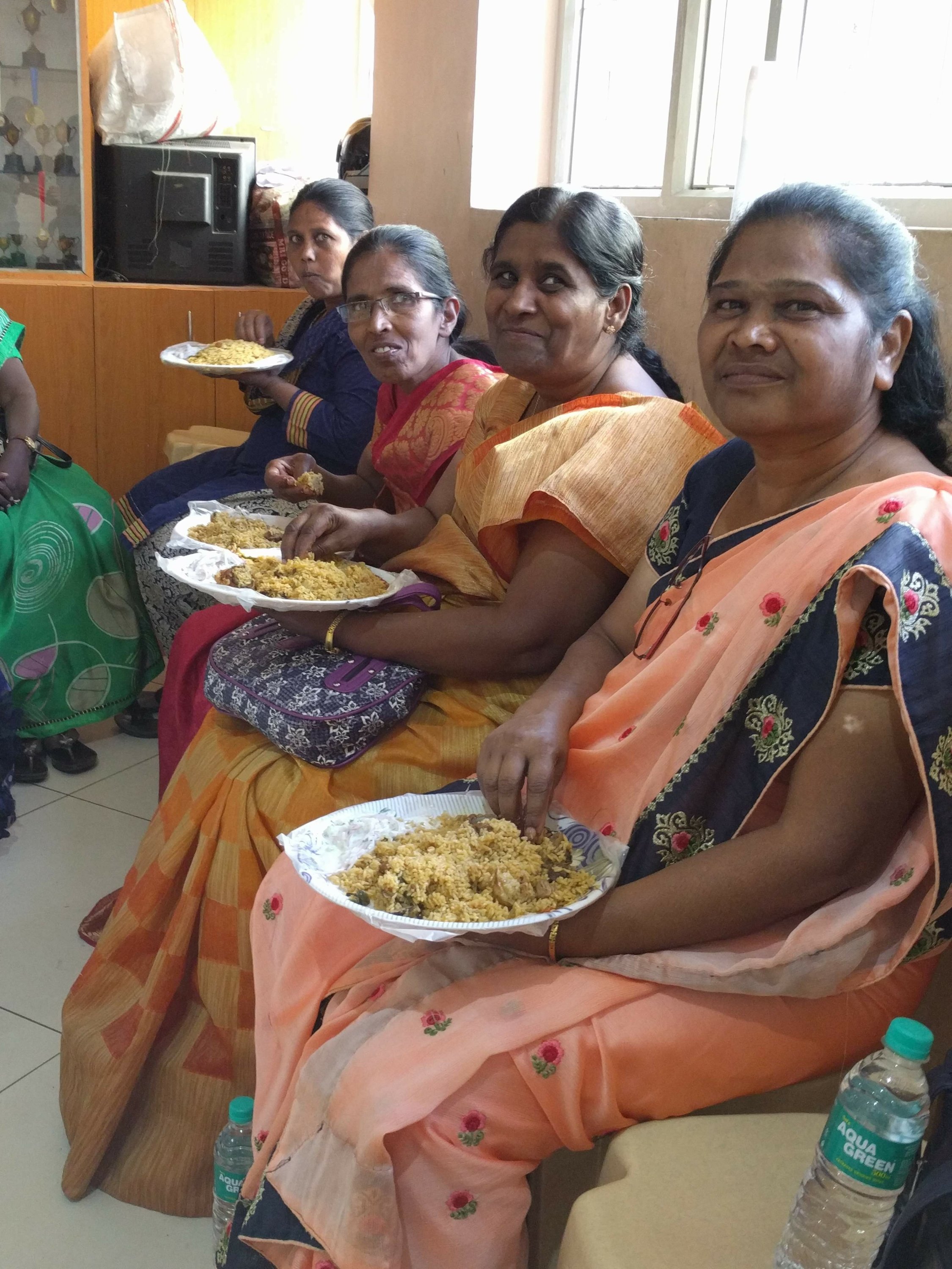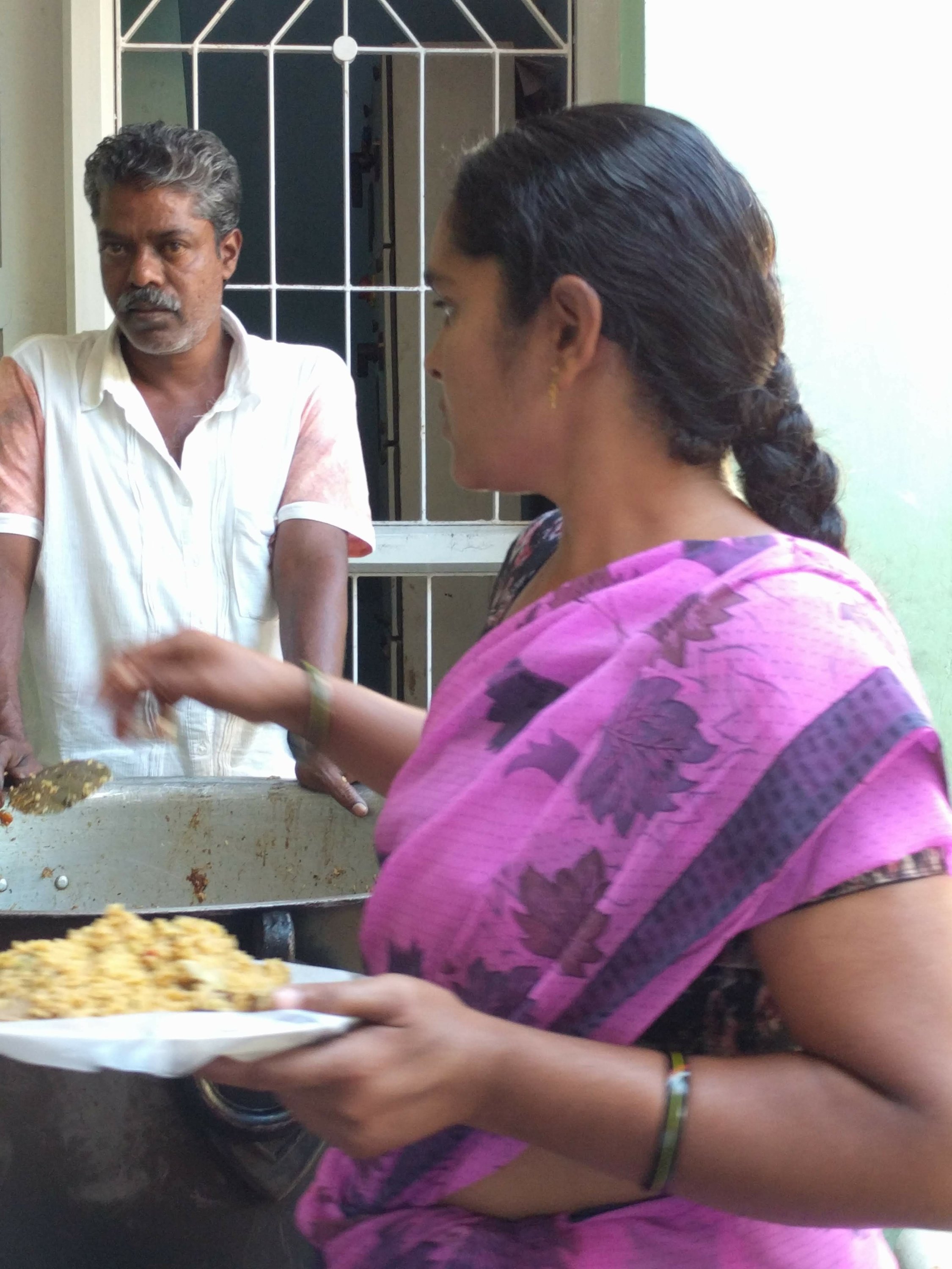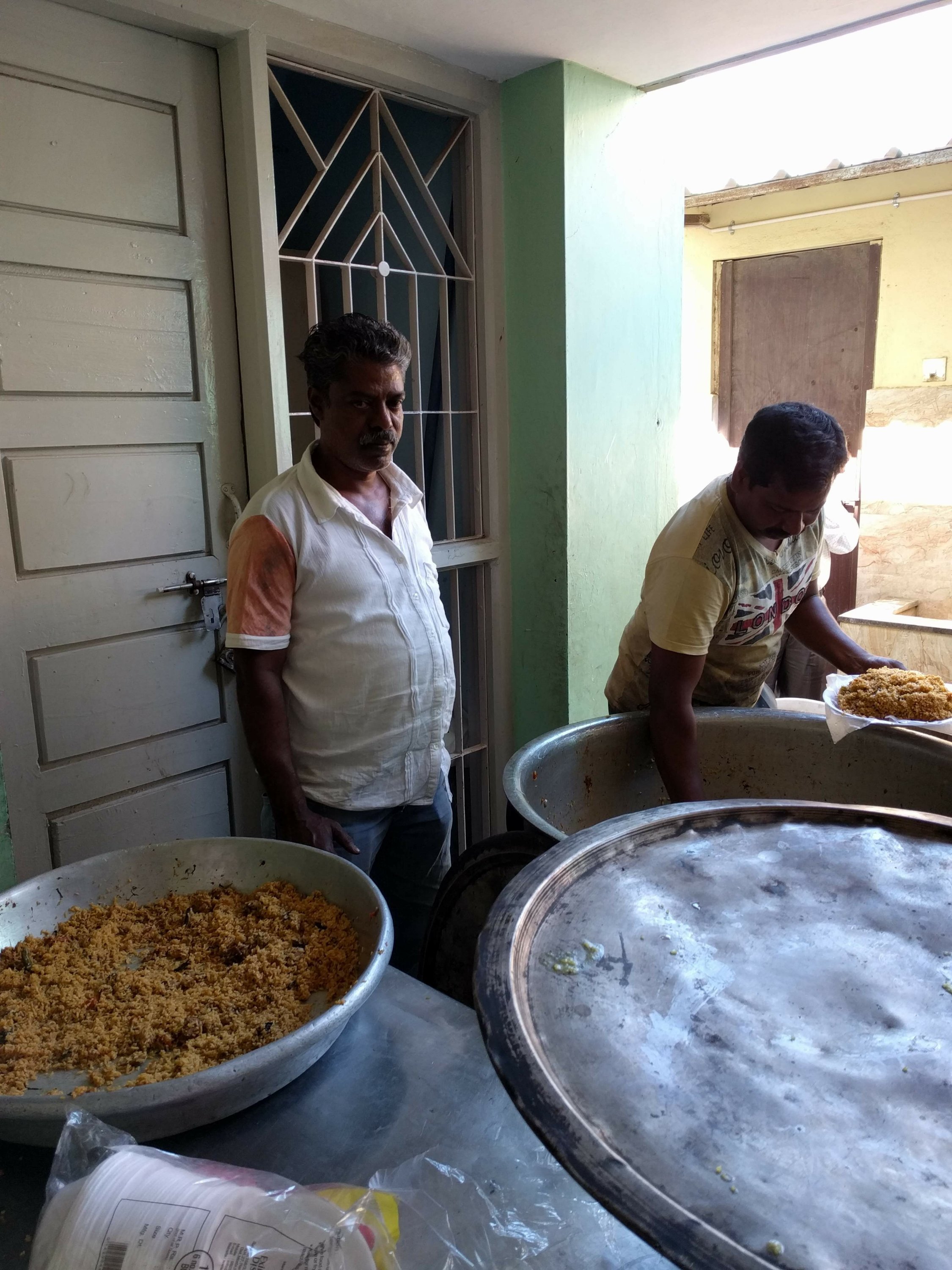 - Mit dem gespendeten Geld unserer Indiensponsoren, das wir aus der Schweiz mitnehmen konnten, bekamen unter anderem alle in jeder Gemeinde ein super Briyani. Es wurden mehr als 1000 Mahlzeiten gekocht und gegessen.