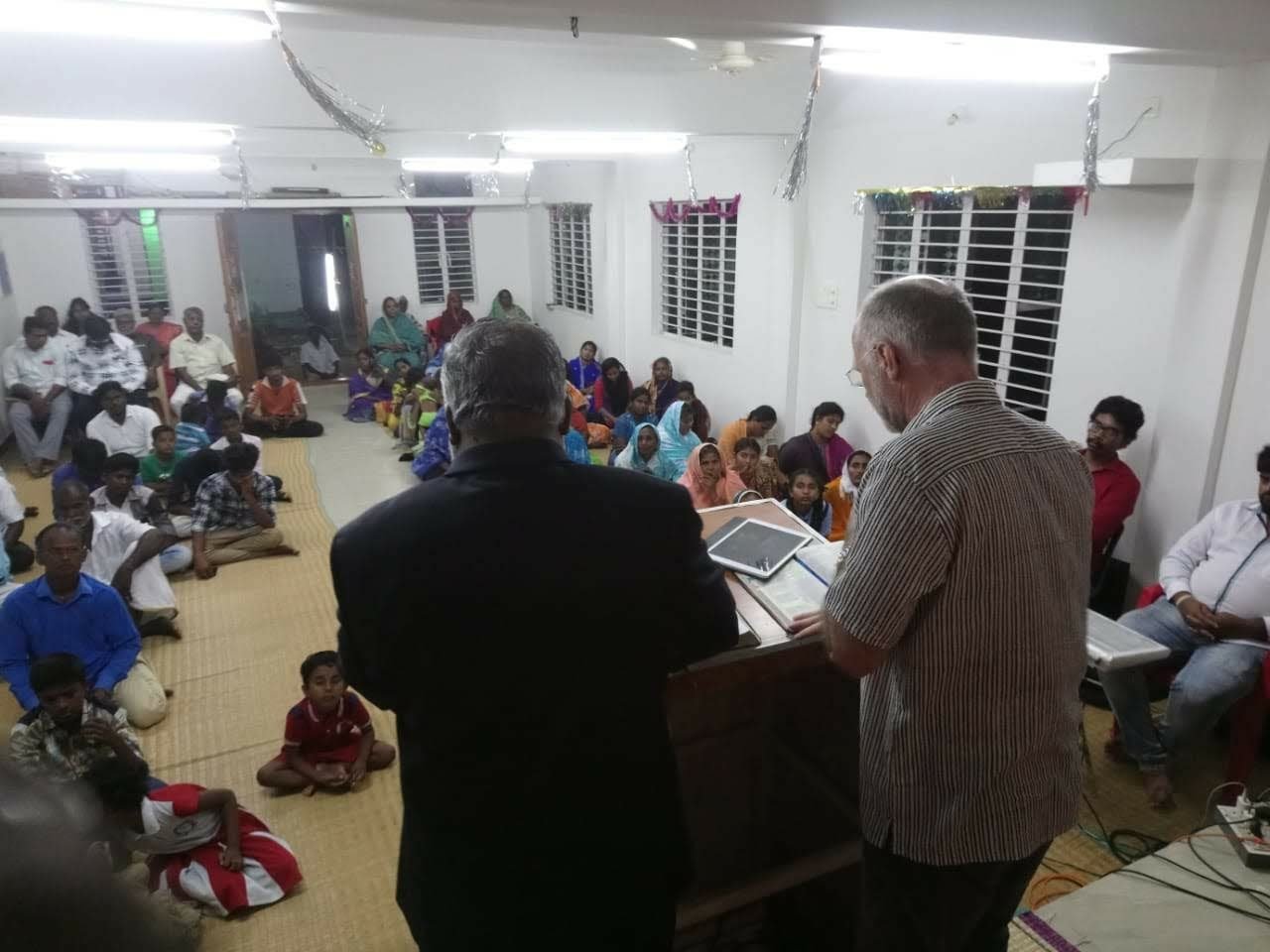 Dieses Pastorenmeeting ist einer der Höhepunkte unserer Reise. Pro Jahr erhalte ich etwa 4-6 Reports über die Aktivitäten der Pastoren und ihrer Frauen aus allen verschiedenen Gegenden in Südindien. Einige von ihnen sehe ich jetzt bereits zum sechsten Mal seit ca. 15 Jahren. Sogleich erkennen wir uns wieder. Andere sind wir dran besser kennen zu lernen. Natürlich nutzen Martha und ich diese Zusammenkunft, um etwas zu erzählen, das uns Gott aufs Herz gegeben hat. Wir erzählen von unserem Ergehen in unserer Ehe. Wir berichten davon, wie wir vor zwei Jahren um unsere Ehe kämpfen mussten. – Wenn wir von unseren Eheherausforderungen und Siegen erzählen, ist dies eine grosse Ermutigung für die Pastoren und ihre Ehefrauen, weil sie dies sonst nie hören.