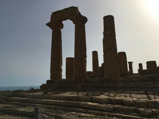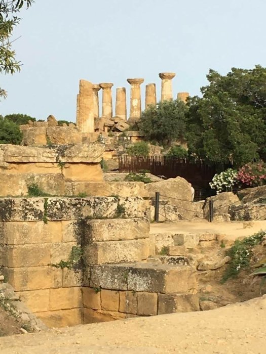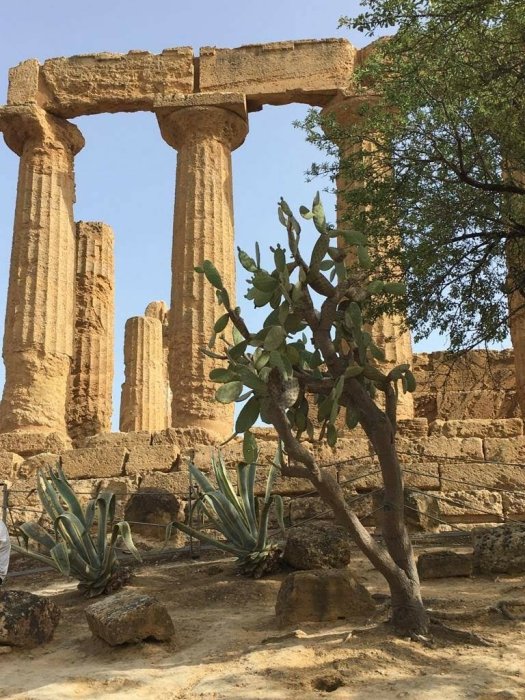 Hier stehen also Überresten einer Stadt mit ihren Tempeln aus dem 6. bis 4. Jahrhundert vor Christus. Griechen, Karthager und Römer wechselten hier als Herrscher einander ab. Ein faszinierender Ort und immer wieder das wohltuende Blau des Mittelmeeres im Hintergrund. Wir geniessen es, auf den breiten Wegen, wie auch über die Trümmerlandschaft zu spazieren. Vom nahegelegenen Agrigent erklingt mehrmals das typischen Glockengeläut des Südens.