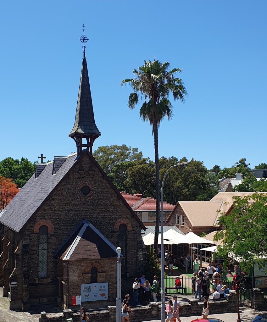 In der Kirche in Kirribilli finden jeden Sonntag 4 Gottesdienste statt: Morgens früh um 8 Uhr ist der Anglikanisch-liturgische Gottesdienst. Um 10 Uhr der Familiengottesdienst, den wir besuchen. Ein weiterer um 17 Uhr und um 19 Uhr der Gottesdienst für die jüngere Generation.