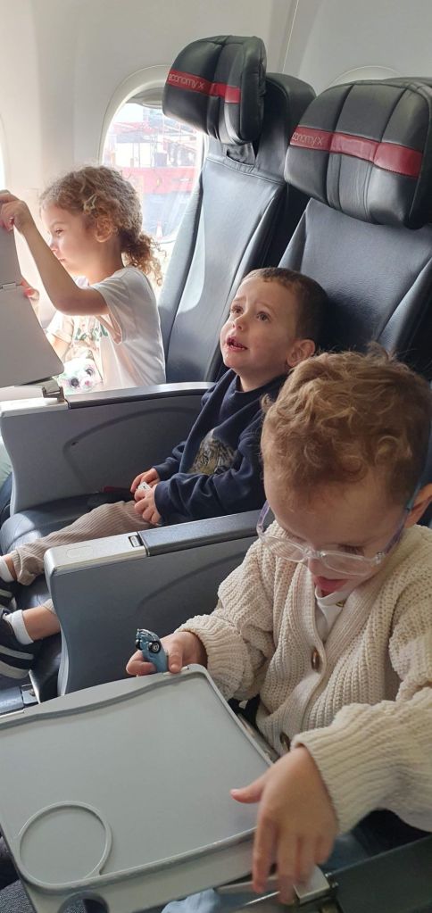 Danach spazieren wir ins Flugzeug. Und los gehts: ab in die Luft.