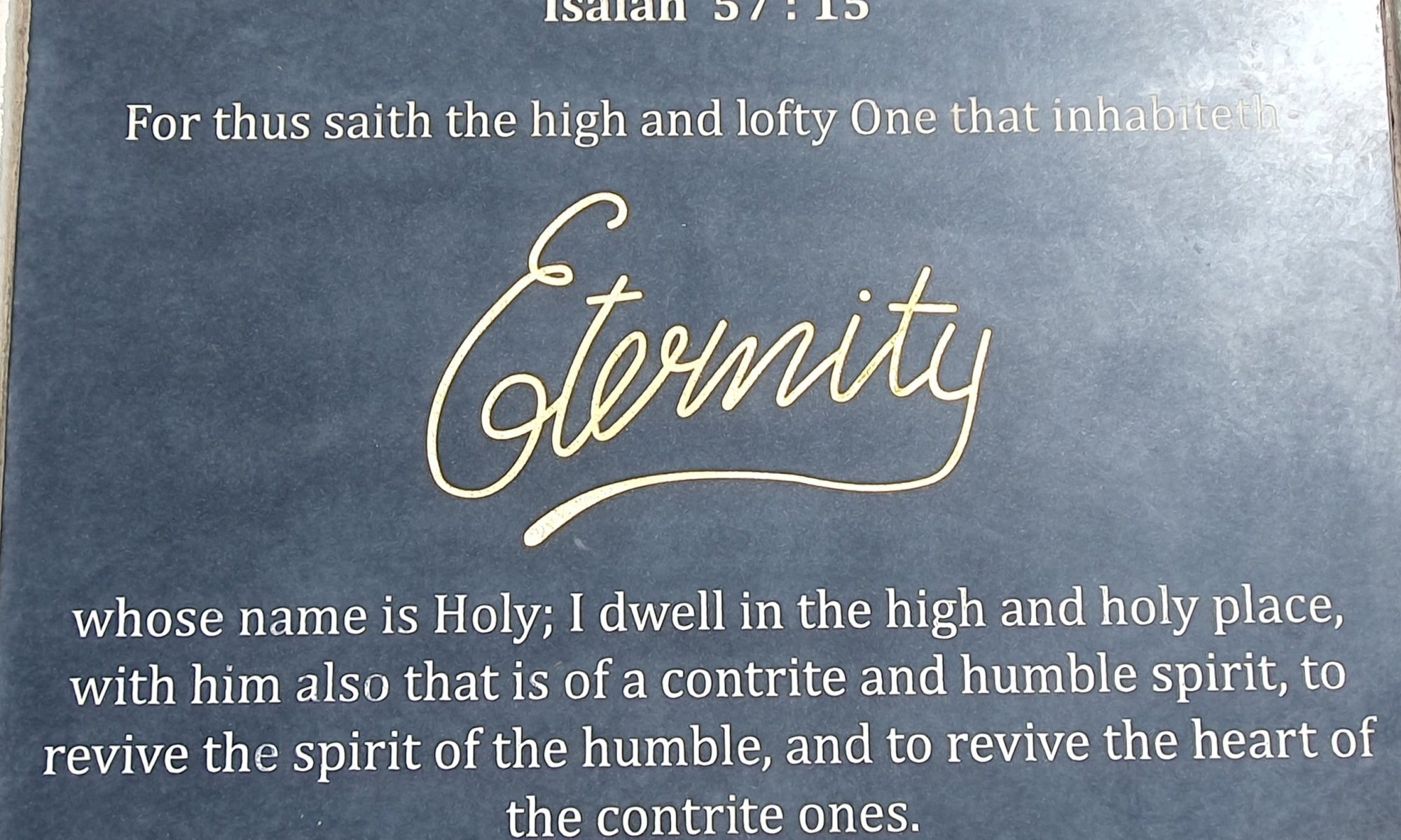 Jesaja 57:15 Denn so spricht der Hohe und Erhabene, der wohnt in der EWIGKEIT und dessen Name »Der Heilige« ist: In der Höhe und im Heiligtum wohne ich und bei dem, der zerschlagenen und gedemütigten Geistes ist, damit ich den Geist der Gedemütigten belebe und das Herz der Zerschlagenen erquicke.