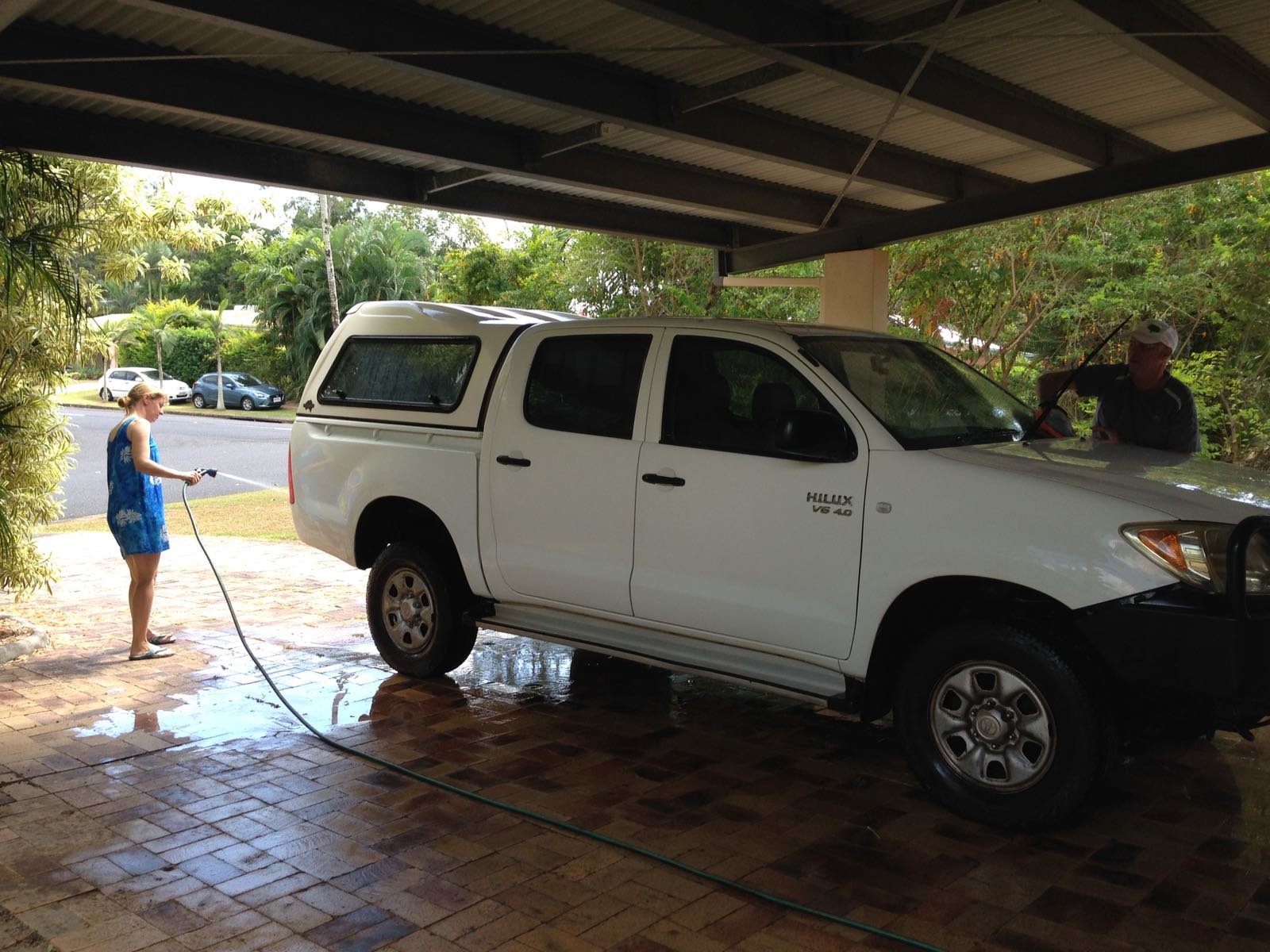 31.8.: Heute haben wir das Auto nach unserem Trip gewaschen. Einfach vor dem Haus mit Schlauch und Schwamm. Dann die Kleider, die Zelte, Matratzen, Küchengeräte etc. waschen, trocknen und alles, was sonst noch nötig ist erledigen. Sarah hatte auf den letzten Kilometern den Eindruck, dass mit der Lenkung des Fahrzeugs etwas nicht mehr stimmte. Heute wurde alles gecheckt und es zeigte sich, dass drei Reifen nicht mehr in Ordnung waren. Nun steht der Toyota vor der Türe mit vier neuen Reifen. Sicher wurden wir hier vor Schlimmerem bewahrt. Thanks to God.