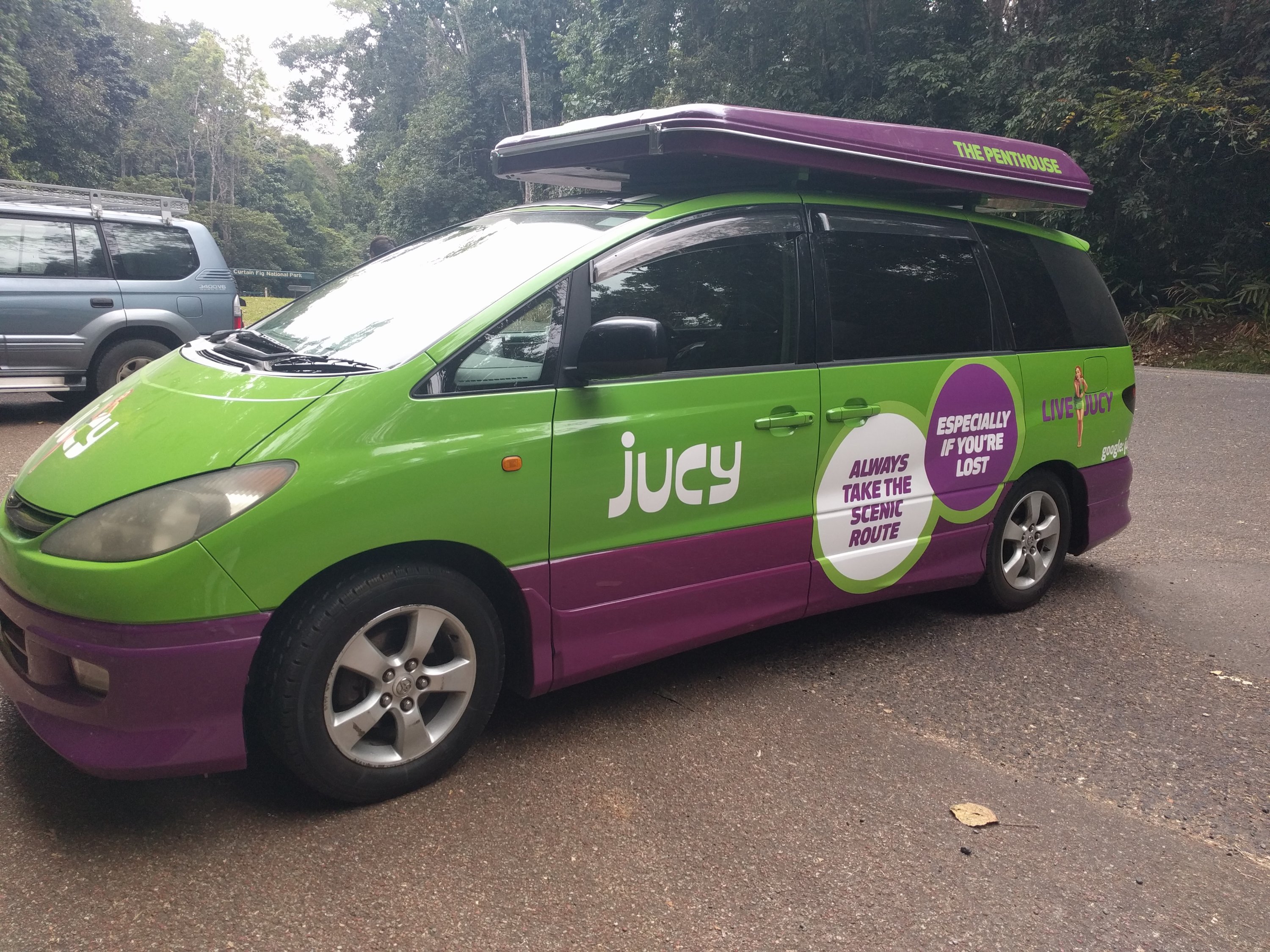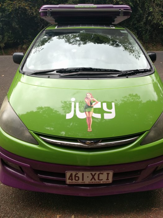 11.9.: Ein neuer Abschnitt unserer Reise hat begonnen. Am Sonntagmorgen fahren wir in Cairns zu Jucy und holen unsere Campervan. Jetzt beginnt unsere 3-wöchiger Trip nach Brisbane. Wir checken den Inhalt des Wagens und gehen gleich einkaufen. Wir müssen nun an vieles denken, was wir auf unserer Reise brauchen. Ein Stock Lebensmittel, Waschmittel und Küchenutensilien, die Martha unbedingt dabei haben will. Dann geht es los. Zuerst fahren wir aufs Atherton Tableland westlich von Cairns. Wir suchen den Campingplatz von Malanda Falls und versuchen unseren Van so einzurichten, dass wir unser Bett bereit haben, aber auch alle Koffer, Esswaren etc in den Wagen bringen. Not so easy. Aber cool, die erste Nacht verläuft super.