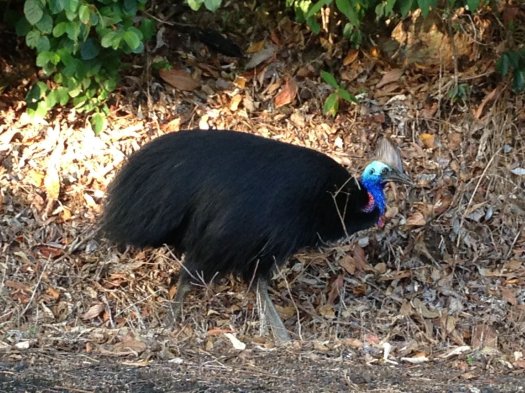 Am Freitag heisst es aufräumen, zusammenpacken und wieder zurückfahren. Wir besuchen noch kurz den wunderschönen Strand von Ettibay. Dort soll ab und zu der Helmcassowary zu beobachten sein. Wir glaubten es kaum. Kurz vor dem Ziel steht ein wunderschönes Exemplar vor unserem Auto auf der Strasse. Er kommt im Strassengraben auf uns zu und lässt sich gerne fotografieren.