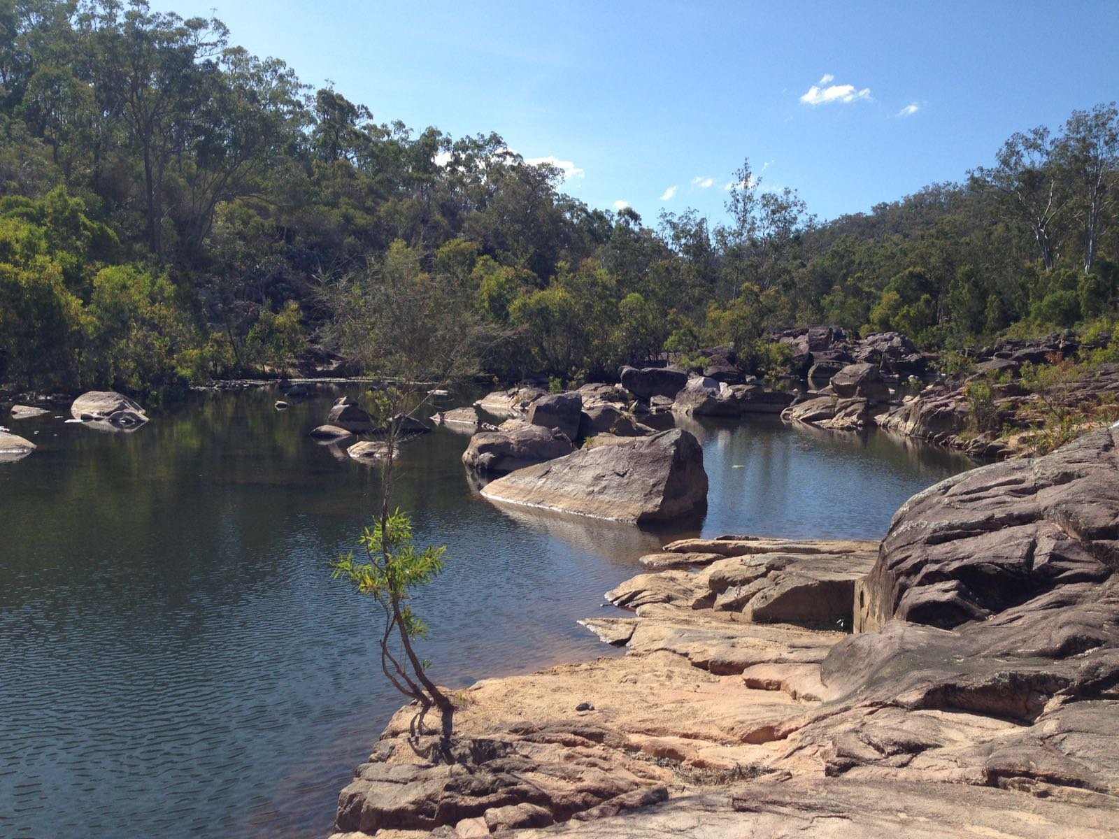 6.-8.9.: Am Mittwoch fuhren wir schwer beladen von Cairns Richtung Süden. Bei Kennedy zweigten wir ab nach Westen in die Berge. Der Toyota fährt mühelos im 4WD-Modus die Steigungen hoch zum ca. 60 km entfernten Camp am Bach. Wir suchen uns das einsamste und schönste Camp am Bach und springen gleich mal ins kalte Wasser. Zelt aufstellen. Holz suchen. Känguruhs und Possums beobachten. Essen kochen und den Abend geniessen.