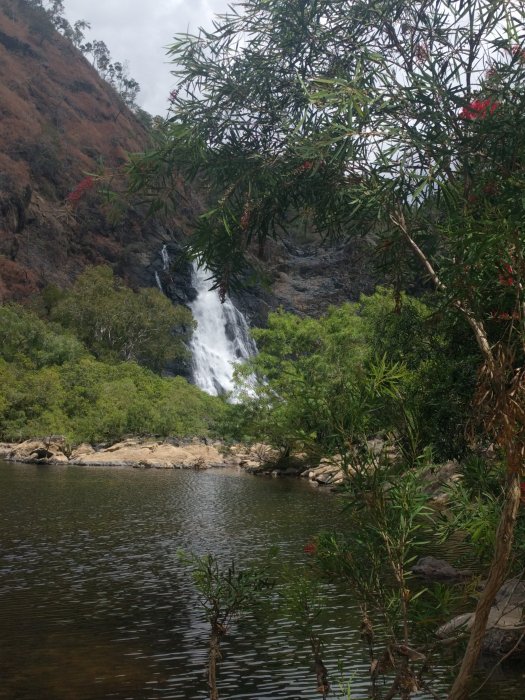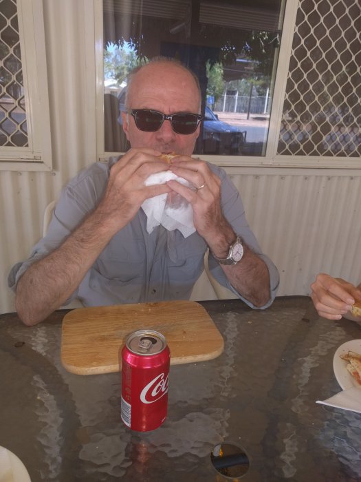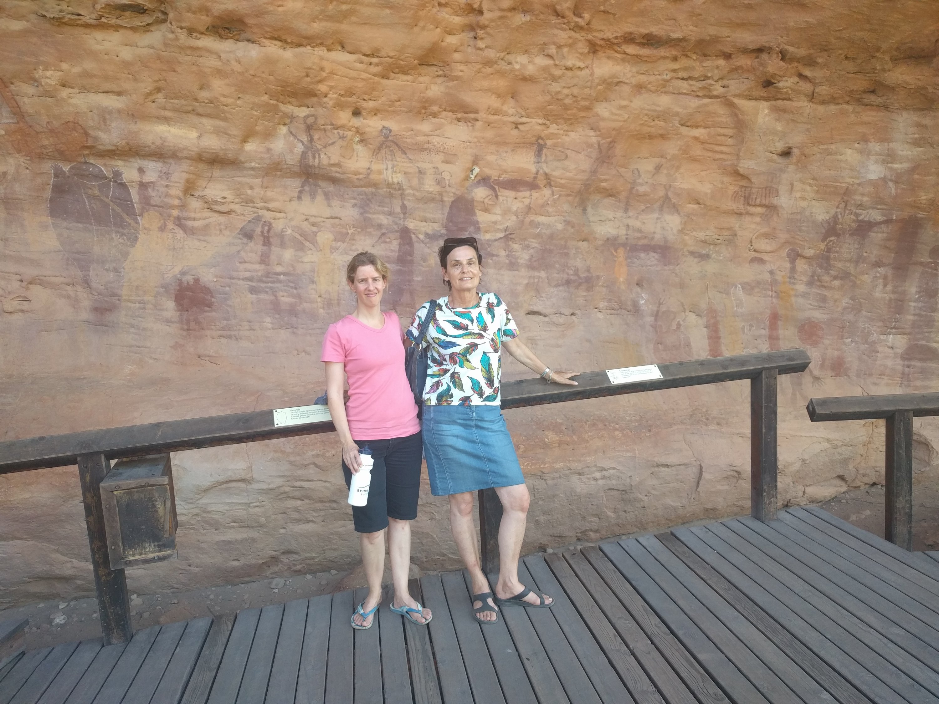 Nach dem Zmorge am Hafen gings los nach Laura. Furchtbar im Gjät draussen. Aber es ist cool mit dem 4WD mit 100km/h über die Naturstrasse zu brettern. In Laura gabs einen sensationellen Burger und einen sehr feinen original Nespresso. Unglaublich! Dann gehts los durch die volle Hitze zu Fuss den Berg hoch zu den Historischen Wandmalereien der Aboriginals. Plötzlich ein Schrei. Sarah, Martha und ich werden von einem Schwarm Wespen angegriffen.Sarah leidet am meisten. Sie hat etwa 20 Stiche!!! Martha und ich je etwa sechs bis acht. Dies war bis jetzt unsere eindrücklichste Tierbegegnung hier. 😂.