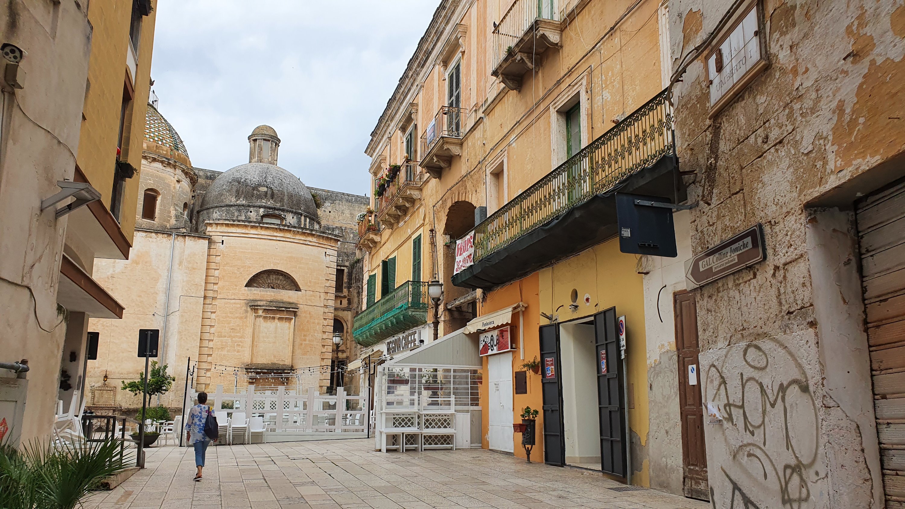 Unterwegs halten wir in einem kleinen Städtchen Grotaglie, welches so reizvoll daher kommt. Wunderschöne Gässchen, welche nicht auf den modernen Verkehr vorbereitet sind. Diese morbiden Fassaden haben das gewisse Etwas, welches uns einfach gefällt.