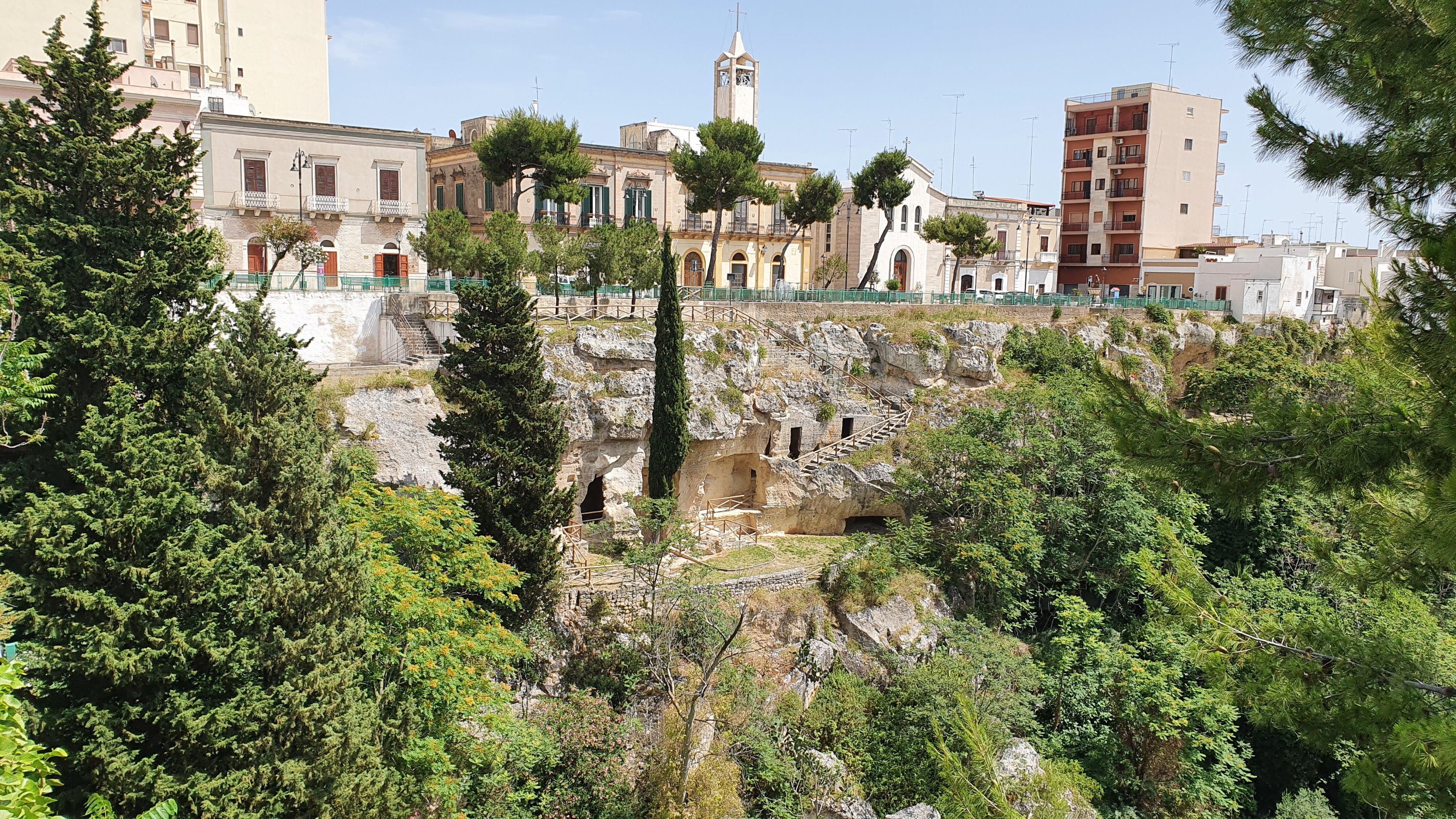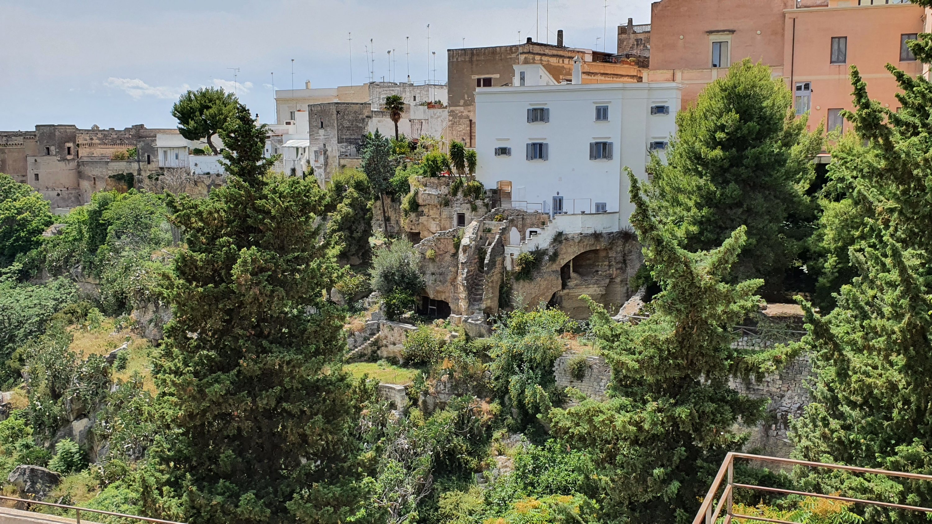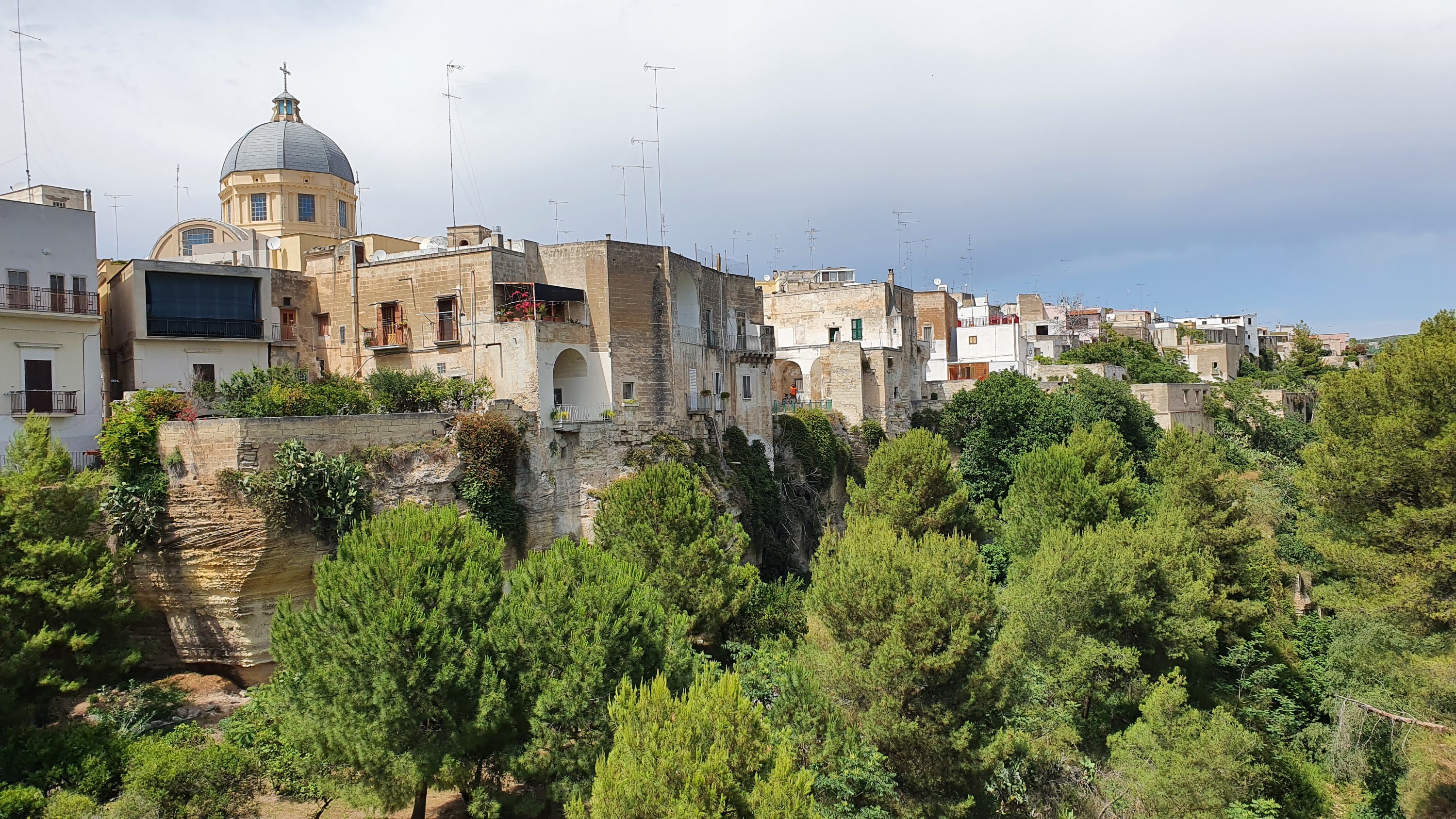 Unser nächster Halt ist die „Stadt auf dem Berg“: Massafra. Bekannt ist dieses „Jerusalem Italiens“, wegen der Wohnhöhlen und der über 50 Grottenkirchen mit sehr schönen, gut erhaltenen Malereien. Weshalb sind diese hier? Im 8. und 9. Jahrhundert flohen Mönche aus Kleinasien in diese Gegend, weil es in dieser Zeit bilderfeindliche Gesetze gab und die Ikonenmalerei verboten wurde. Leider konnten wir wegen der Corona Pandemie, weder die Höhlen, noch die Kirchen besuchen. Die Stadt auf den Hügeln mit prächtiger Aussicht auf Tarent wird wegen ihres Aussehens aus der Ferne gerne das Jerusalem Italiens bezeichnet.