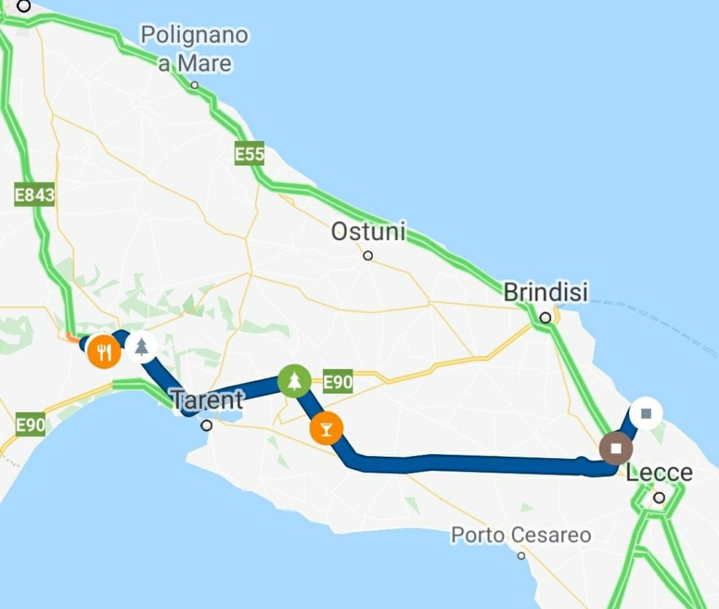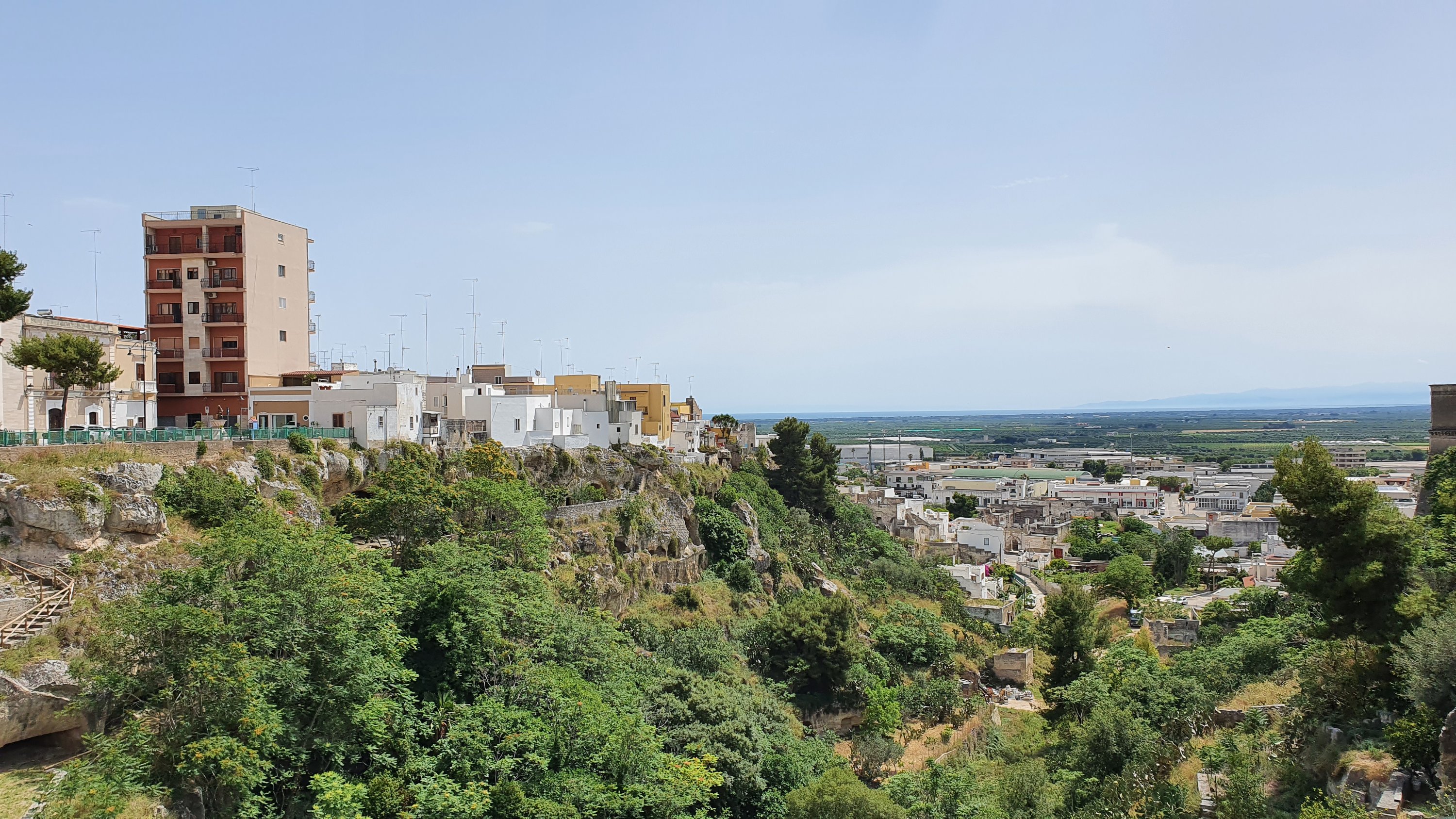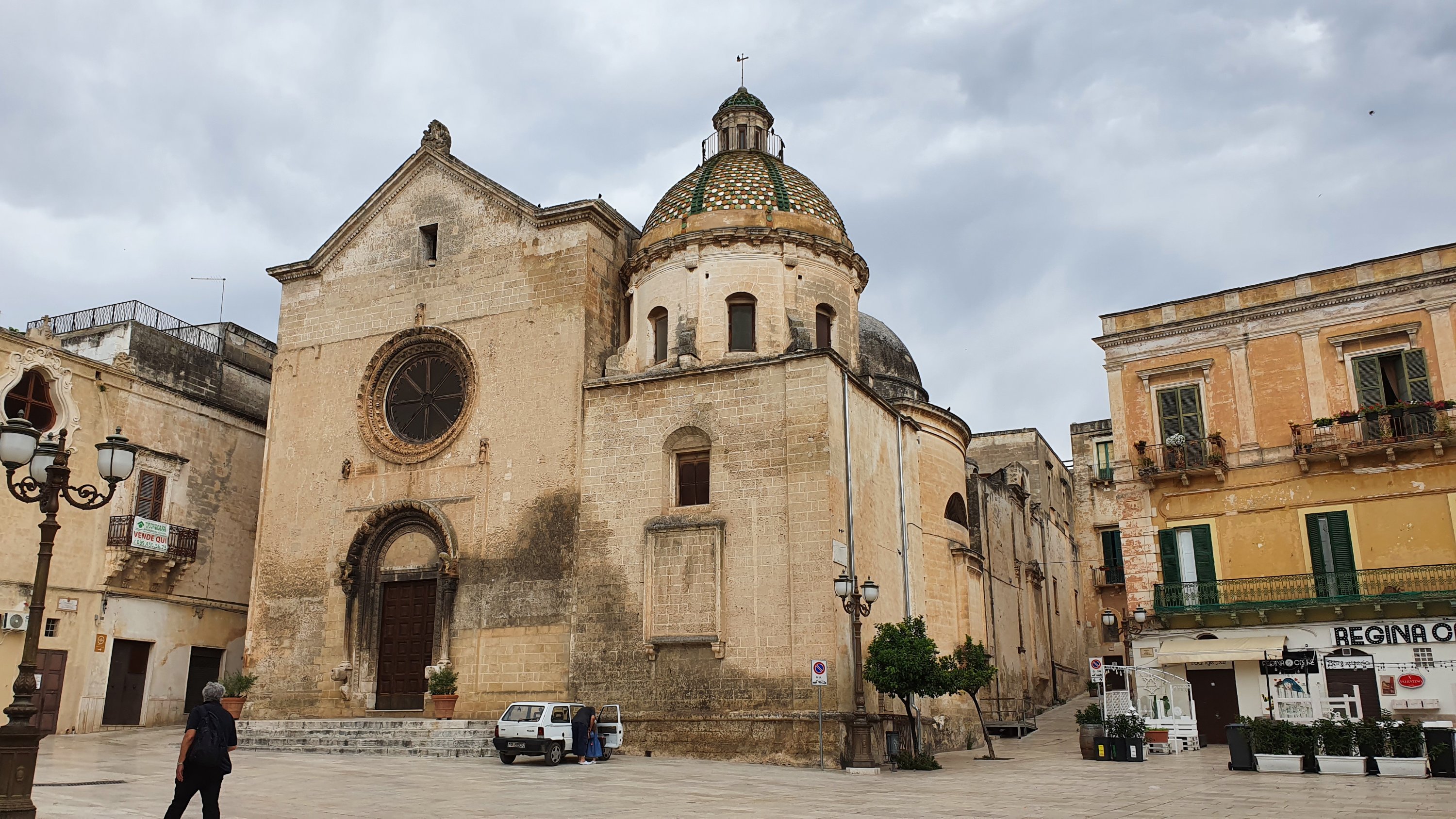 Unser nächster Halt ist die „Stadt auf dem Berg“: Massafra. Bekannt ist dieses „Jerusalem Italiens“, wegen der Wohnhöhlen und der über 50 Grottenkirchen mit sehr schönen, gut erhaltenen Malereien. Weshalb sind diese hier? Im 8. und 9. Jahrhundert flohen Mönche aus Kleinasien in diese Gegend, weil es in dieser Zeit bilderfeindliche Gesetze gab und die Ikonenmalerei verboten wurde. Leider konnten wir wegen der Corona Pandemie, weder die Höhlen, noch die Kirchen besuchen. Die Stadt auf den Hügeln mit prächtiger Aussicht auf Tarent wird wegen ihres Aussehens aus der Ferne gerne das Jerusalem Italiens bezeichnet.