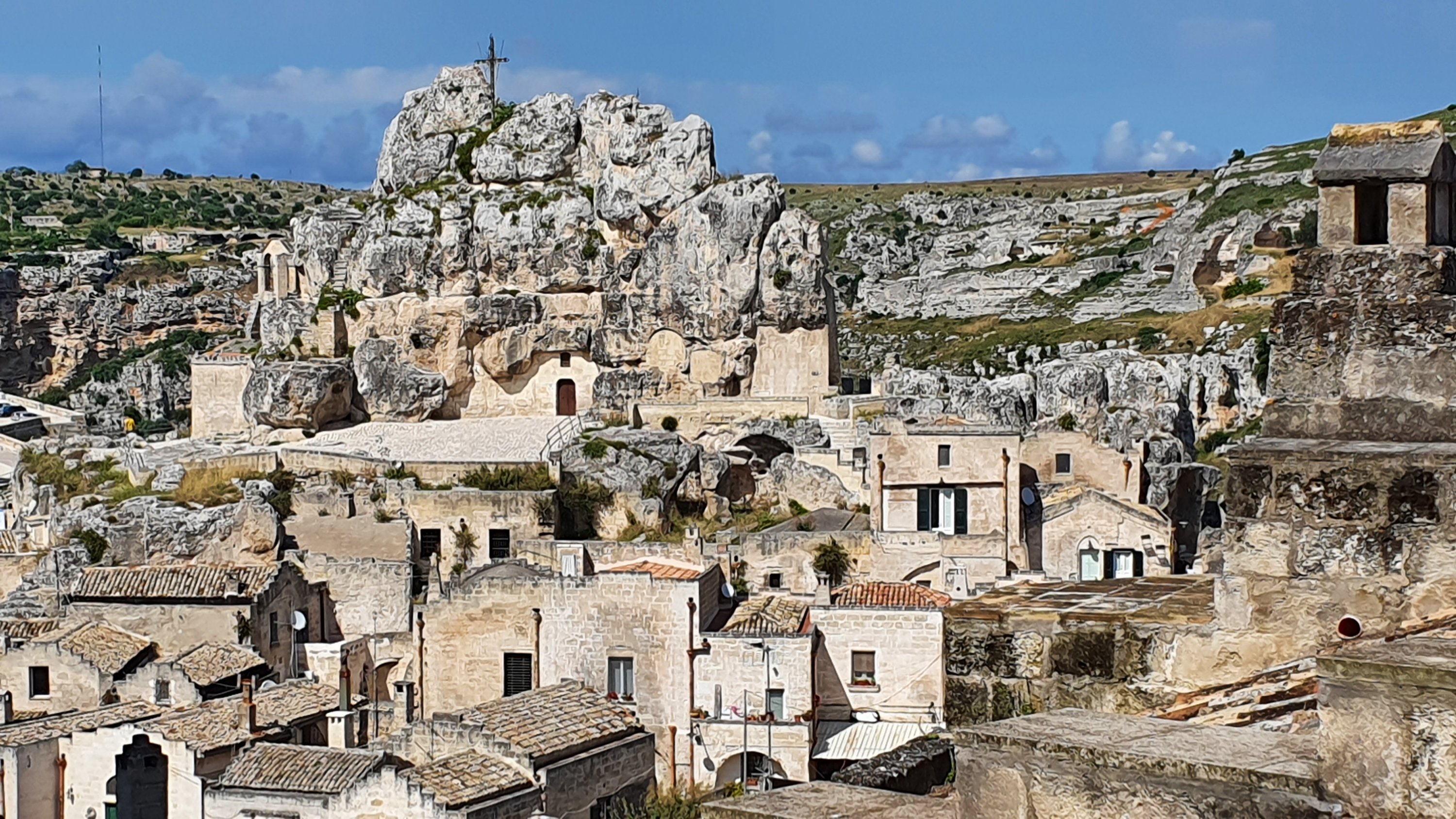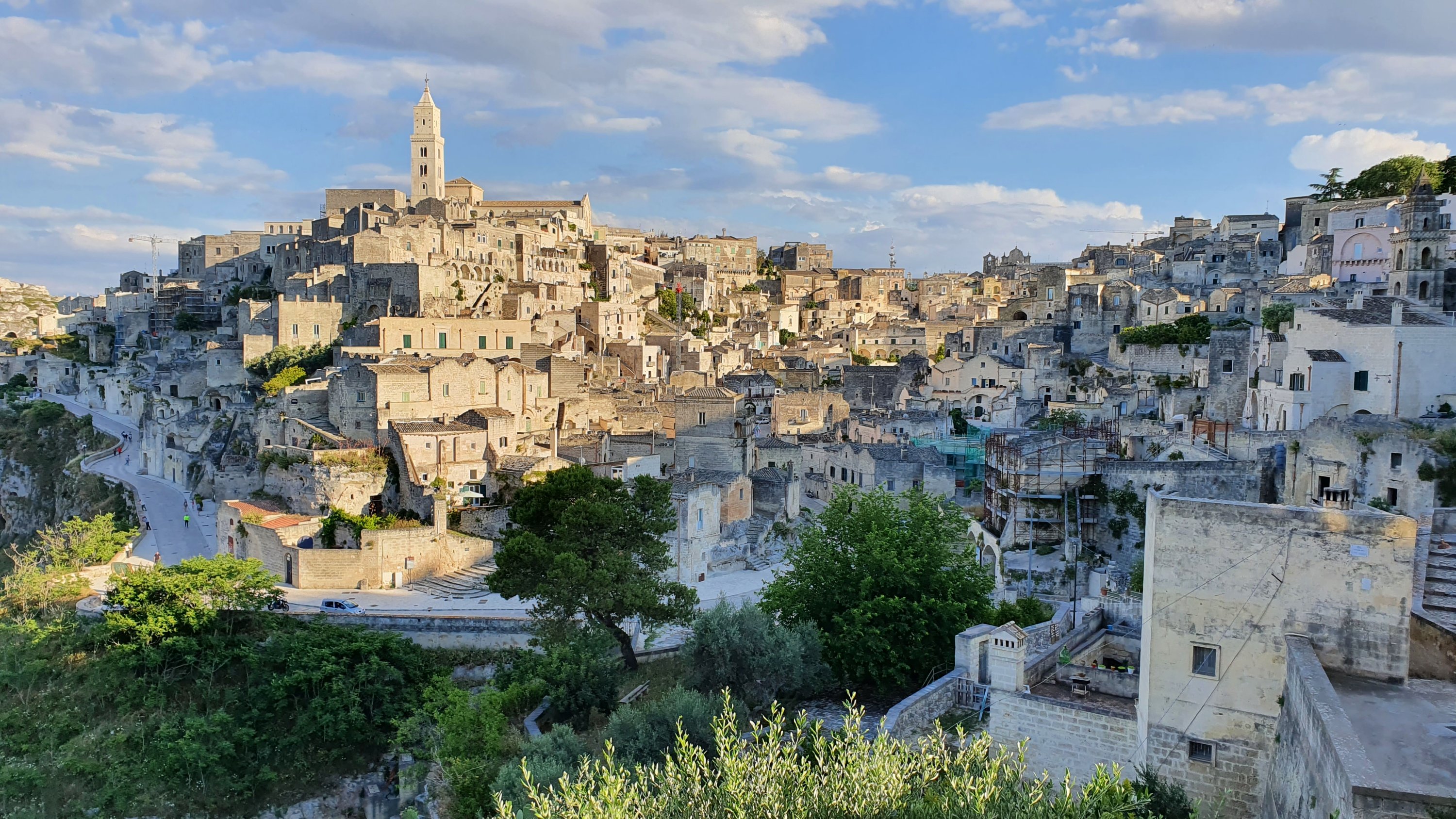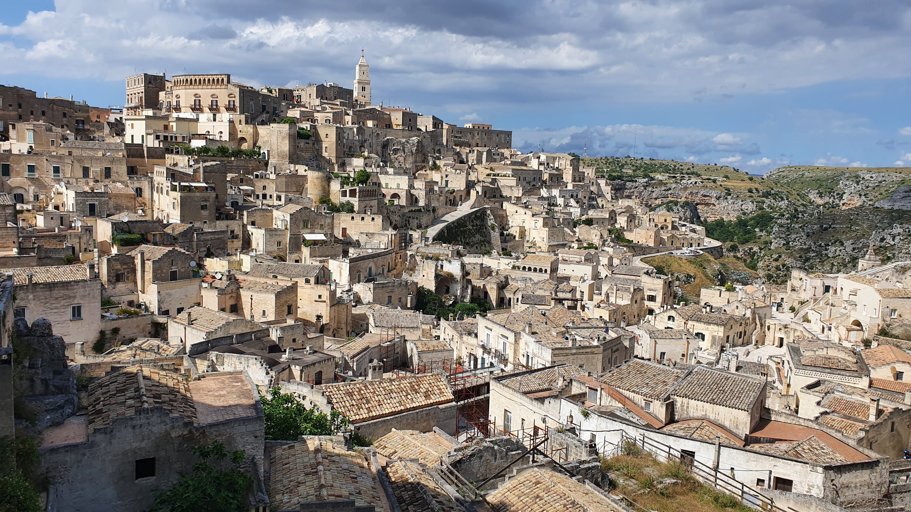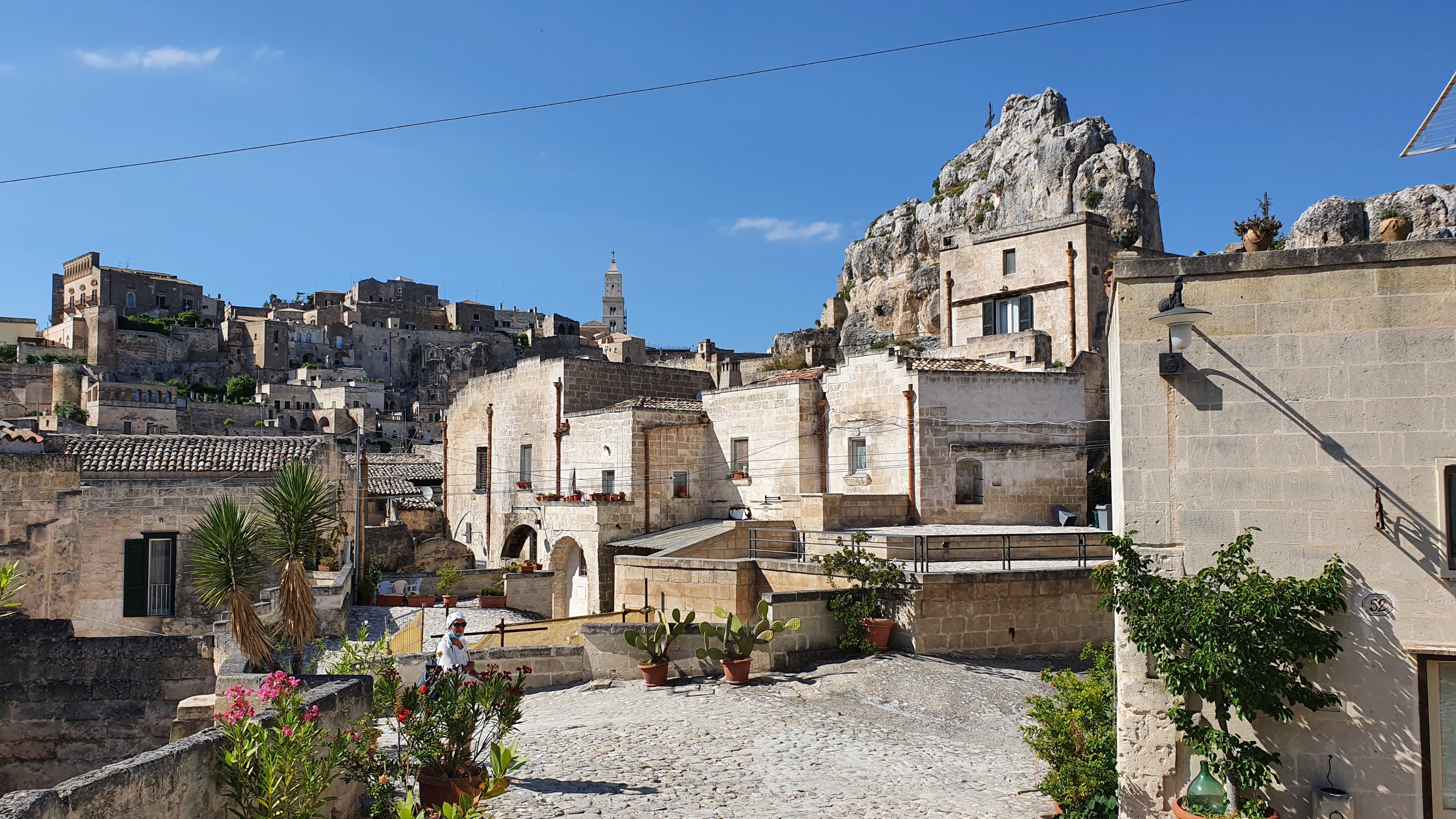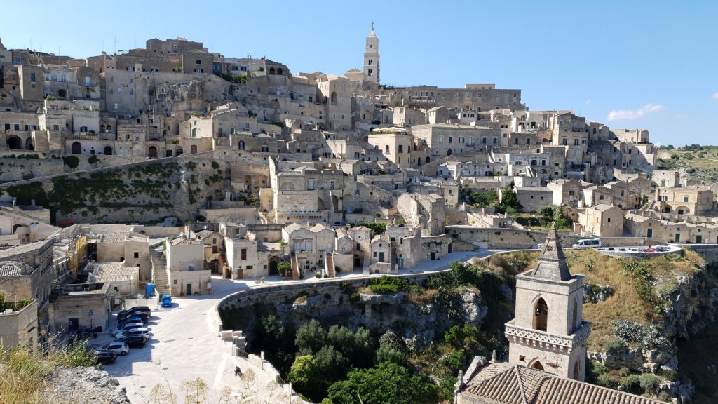 Wir verbrachten fast vier Stunden treppauf, treppab in diesen Gassen. Immer wieder staunten wir über die neue Aussicht auf die Häuser, Plätze und Gässchen. Natürlich besuchten wir auch eine Nachbildung eines Sasso und einzelne Felsenkirchen mit Fresken, die uns beeindruckten. Wegen der Coronapandemie waren nicht viele Touris hier und das war für uns ein enormer Gewinn. Beeindruckt lauschten wir um 7 Uhr abends den mannigfaltigen Glocken der Stadt.