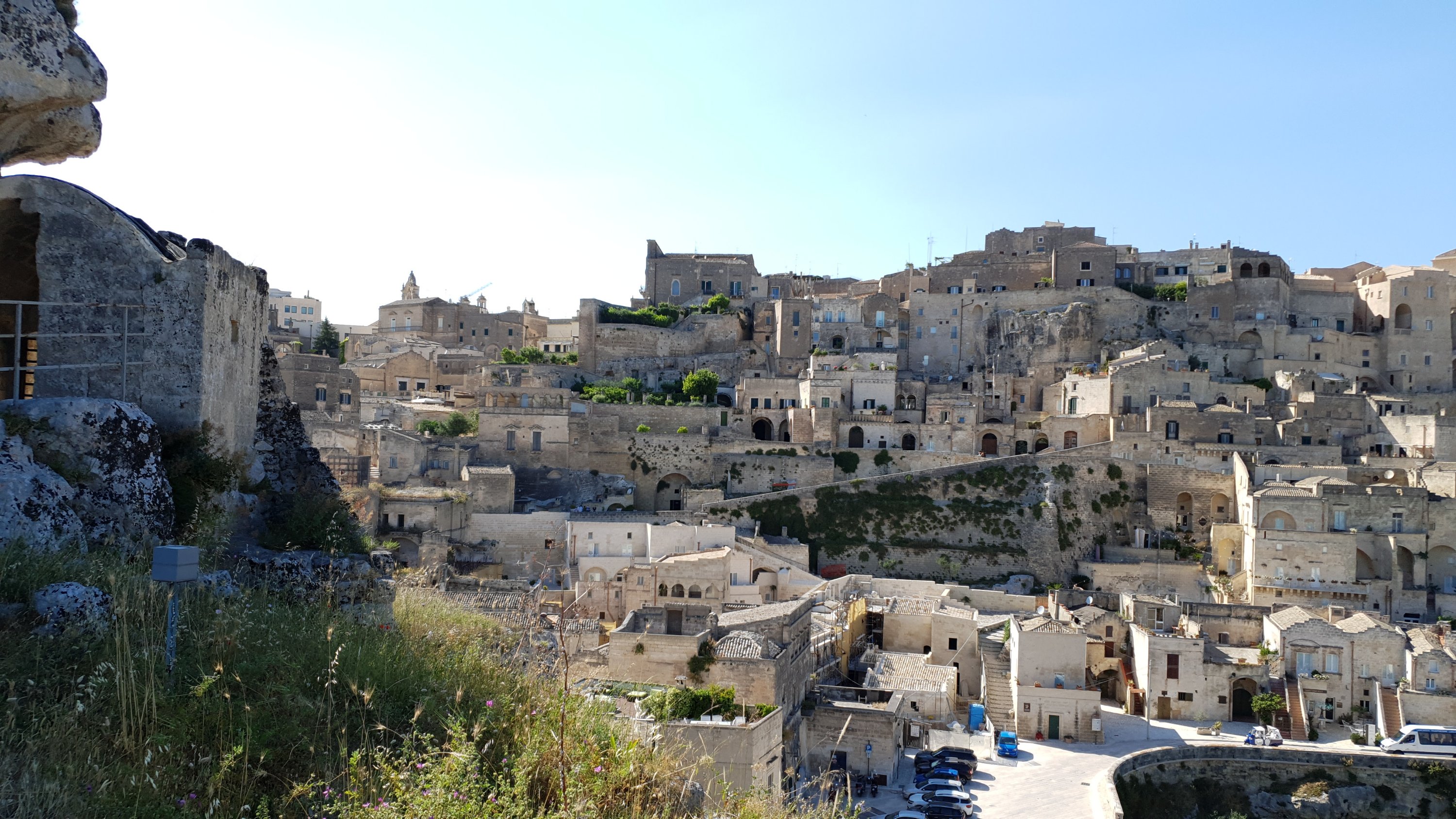 Matera ist die Stadt der Felsenkirchen, der Höhlenwohnungen (Sasso/Sassi). Und im Jahr 2019 war sie als erste Stadt Italiens die Kulturhauptstadt Europas. Ebenso ist sie Weltkulturerbe der UNESCO. – Es ist aber auch die Stadt der Filme: Pier Paolo Pasolini drehte hier das Matthäusevangelium, Mel Gibson drehte die „Passion of Christ“ an diesem Ort und der neuste James Bond, welcher sicher bald in die Kinos kommt, wurde hier gedreht. – Es ist egal, was du schon alles über diese Stadt in der Provinz Basilikata gehört hast. Ob gute oder schlechte Berichte und Informationen. Das spielt alles keine Rolle: Du solltest Matera selber sehen. Wir reisten etwa 45 Minuten nach Matera. Als wir dort ankamen, sahen wir nichts, aber auch gar nichts von der historischen Stadt. Wir fragten am Strassenrand einen Mann und der verwies uns an die Leute vom Tourismusbüro. Nun kam die Parkplatzsuche. Doch wie durch ein Wunder fanden wir sehr nahe beim Zentrum einen gratis Parkplatz! Nach einigen Schritten standen wir an einem Platz, der Überblick über diese einmalige Stadt bot: Wau, ohh, yes!!! Das war sie also, diese einmalige Stadt, in welcher die Menschen in armseligen Höhlen (Sassi) mitsamt ihrem Vieh hausten. Was für eine Armut und Not herrschte hier in dieser Stadt. So schlimm war es, dass in den 1950er Jahren die Regierung die Bewohner evakuierte und in neue Siedlungen dislozierte. Vor allem deshalb, weil mit den Tieren und dem Trinkwasser schlimme Krankheiten z.B. Malaria die Menschen plagten.