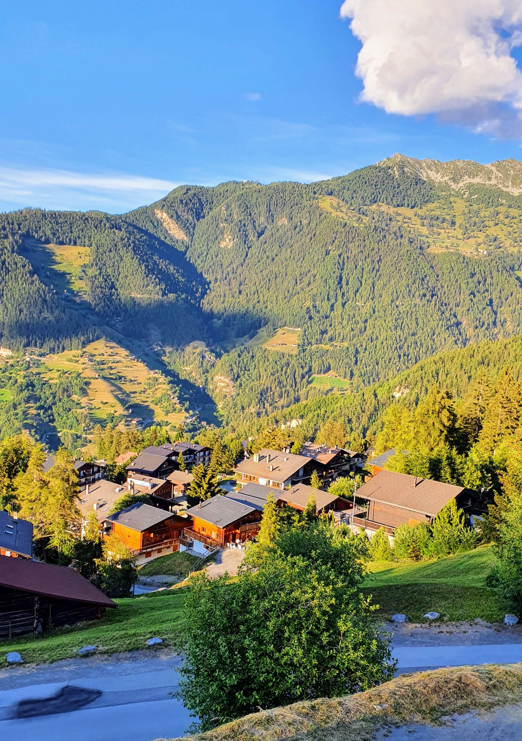 Sommerferien mit zwei unserer Kinder mit Schwiegertöchter und Kinder. Ein super tolles Familiencamp fängt an. Gemeinsam fahren wir mit Urs und Heidi und den Enkelkindern in zwei Autos ins Wallis. Leider war dieser Samstagnachmittag der wohl meist befahrene Tag dieses Jahres. Es ist schliesslich Ende Corona und alle wollen diese Sommerferien nun gemäss Ueli Maurer’s Empfehlungen in der Schweiz verbringen. In Rothrist sagt unser Navi: „Autobahn verlassen und auf der alten A1 durch die Dörfer bis nach Kirchberg fahren!“ – Ich meine, wenn der Ueli diese Schweizerferien Coronabedingt schon verordnet, dann könnte er ja an diesem Samstag etwas tun, dass wir auch gut dort ankommen. Ein riesiges Puff auf den Autobahnen. Kolonnenverkehr bis nach Bern, dann geht es schnell und wir sind im Wallis. Gefühlte hundert Kurven müssen wir jetzt hoch in dieses sonnige Dorf am Südhang. Wunderschön gelegen können wir in das gemütliche 5☆ Chalet einziehen und die Beine hochlagern.