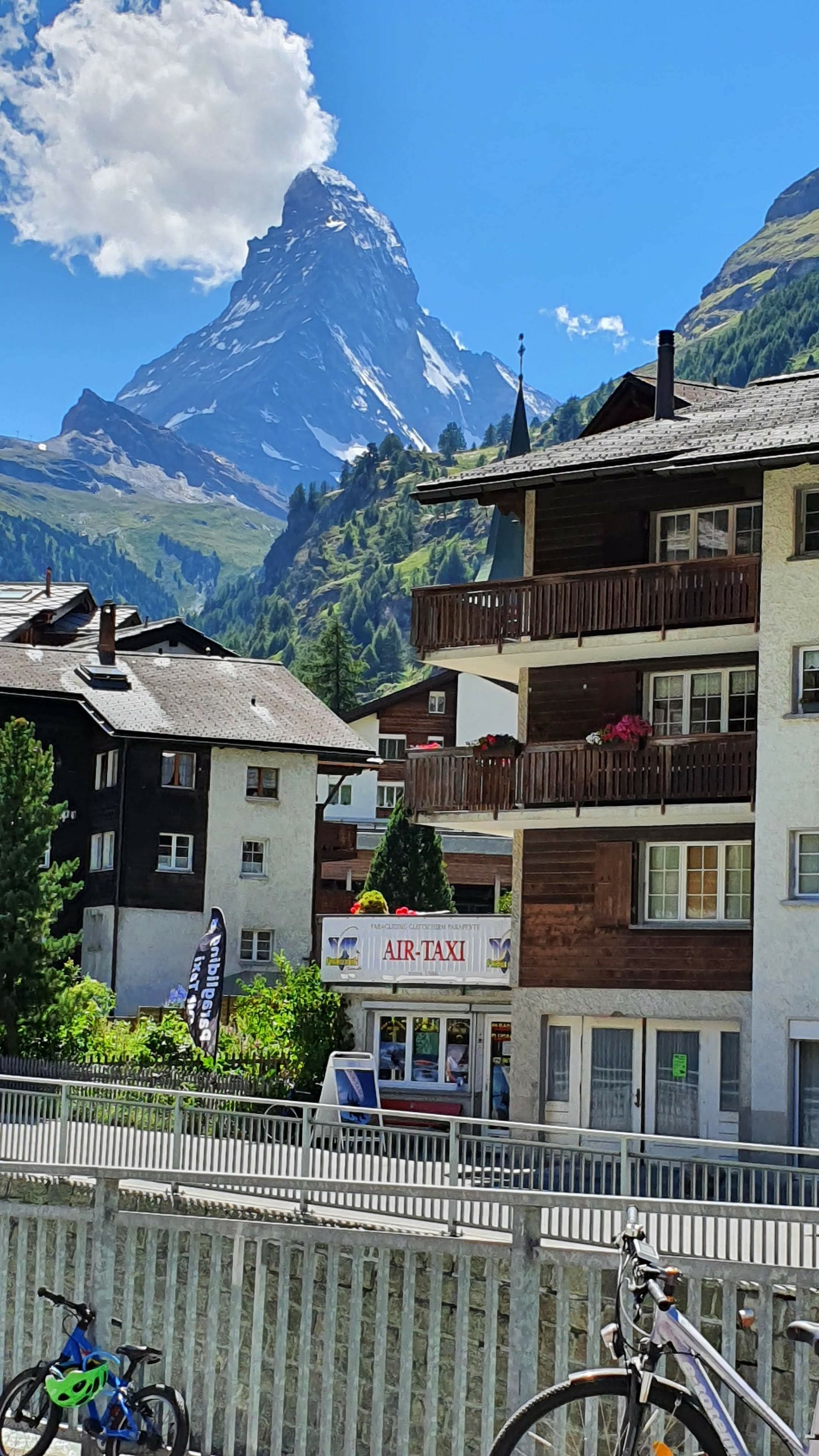 Für heute planen wir wegen des wunderschönen Wetters unseren Ausflug nach Zermatt. Also los gehts am Morgen in zwei Autos mit sechs Erwachsenen und zwei Kiddys. Wir fahren durch Staus auf den kurvigen Strassen nach Täsch. Von dort mit der Bahn hoch nach Zermatt. Das Dorf Zermatt bedeutet für Martha und mich History. Die Erstbesteigung des dominierenden Matterhorns und seine sagenumwitterten Geheimnisse lesen wir dort vor der Kirche den Mitreisenden vor. Es war so spannend!