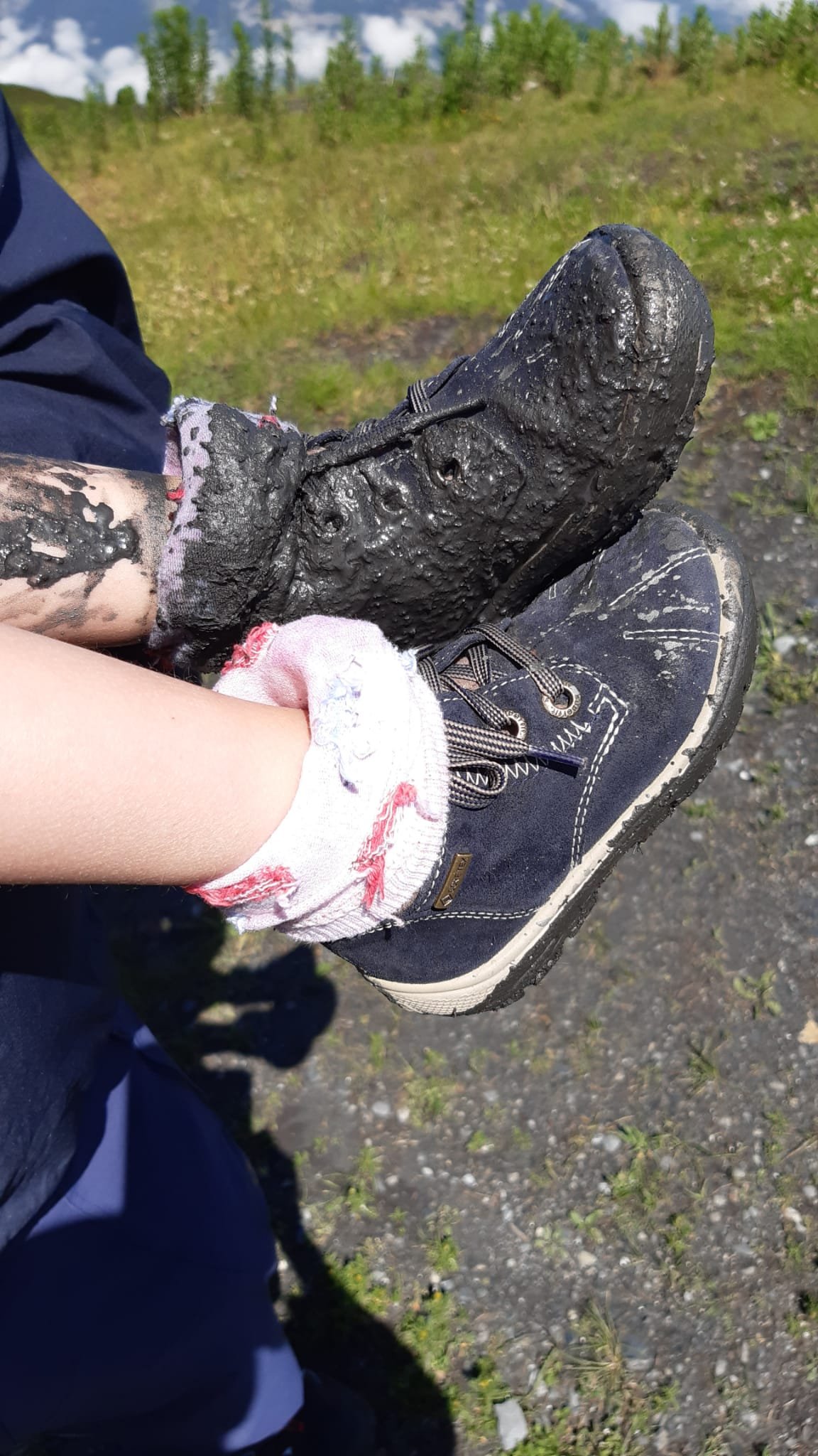 Es ist ein einzigartiges Vergnügen, Grosskinder aufwachsen zu erleben. Am Eindrücklichsten erleben wir das gerade hier in den Ferien mit Ruby. Heute sucht sie sich Pfützen aus, um sich darin auszutoben. Voller Vergnügen stampft sie darin herum und freut sich über jeden Spritzer. Aber dann bemerkt sie schockiert, dass Schuhe, Socken und Hosen nicht nur nass, sondern dreckig geworden sind. Nein, so steigt eine Lady ganz sicher nicht in die Gondelbahn. Zuerst muss alles gründlich gereinigt werden. Martha hilft ihr mit Mineralwasser und Hygienetüchlein alles wieder sauber zu machen. Jetzt ist die Welt wieder in Ordnung. Alles tiptop und los gehts mit dem nächsten Gondeli wieder runter ins Tal.