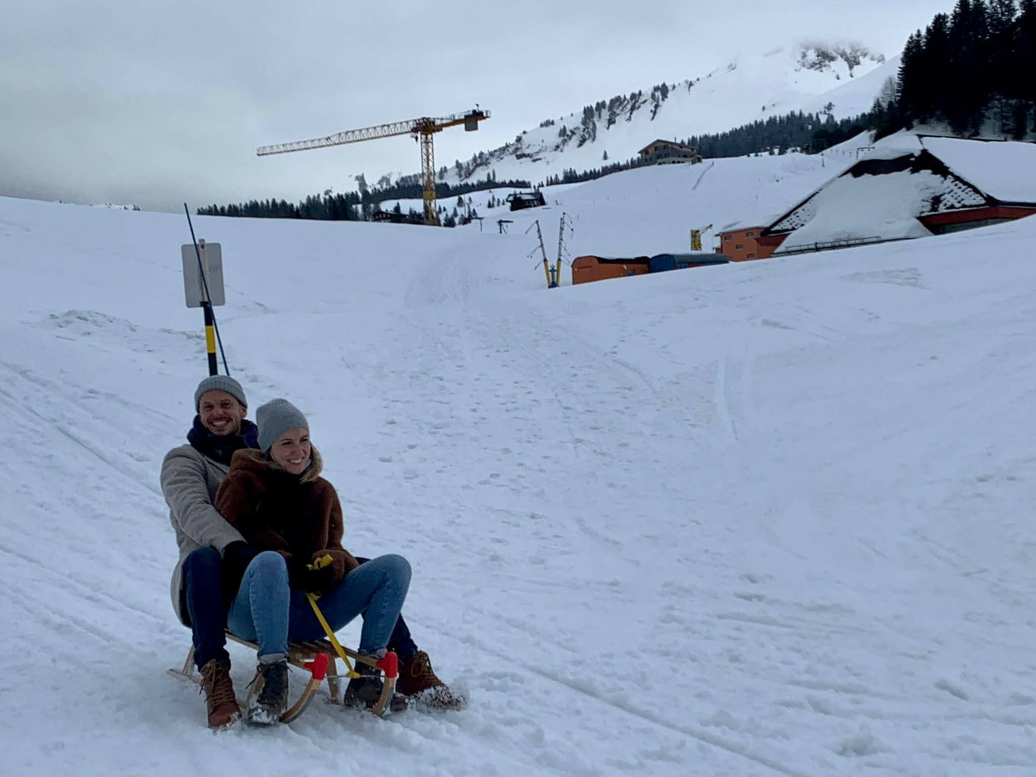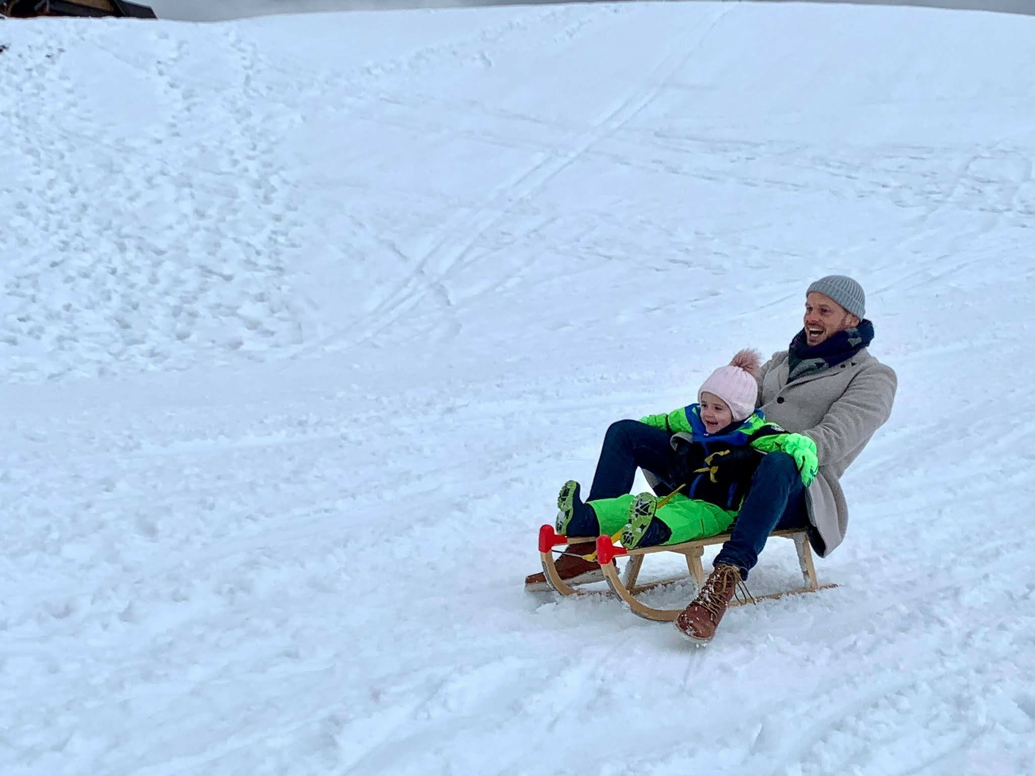 Die neue Stoosbahn ist wirklich beeindruckend und wir geniessen die komfortable Fahrt. Oh, wie sind wir überrascht, als wir auf dem Stoos eine richtige Winterlandschaft mit einem Meter Schnee antreffen. Mit dem „Schneetraktor“ geht es zu unserem Hotel und wir helfen einander mit den Kindern und dem Gepäck.