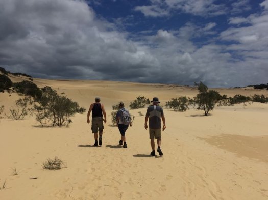19.-23. 10.: Der Wetterbericht klingt nicht so super für unseren bevorstehenden Inseltrip. Trotzdem fahren wir los und werden auf dem Weg so richtig durchgewaschen. Doch bei unserer Ankunft an der Fähre scheint die Sonne und begleitet uns die kommenden Tage. Frazer Island bedeutet herrliche Natur und Adventure pur. Seeadler gleiten über uns. Meeresschildkröten können wir vom Indian Head aus beobachten und am Strand treffen wir auf zwei Dingos.